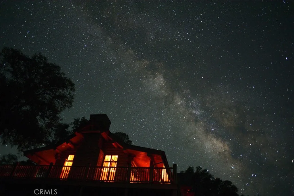 Offered for the first time, Rancho Tres Robles captures the essence of Central Coast living. This custom two-bedroom, two-bath fully furnished Alpine log home is nestled among the treetops, offering panoramic unobstructed views. An expansive wraparound deck provides the perfect setting to take in Paso Robles legendary sunsets and star-filled nights. Each log of the home was hand-hewn and saddle-notched, showcasing exceptional craftsmanship throughout. Inside, warm wood floors, soaring ceilings, expansive picture windows, and custom cabinetry create a rich, inviting atmosphere in every room. Multiple doors open to the wraparound deck, seamlessly blending indoor and outdoor living and nearly doubling the entertaining space. The expansive great room, anchored by an Xtrordinair wood-burning fireplace, offers a warm and welcoming setting for both lively gatherings and quiet evenings at home. The chefs kitchen is beautifully appointed with double ovens, custom cabinetry, a large granite island, and a six-burner Thermador range with a built-in pot filler. Two spacious bedrooms are thoughtfully positioned on opposite sides of the home to provide privacy, including a serene primary suite with an en suite bath and walk-in closet. A side entrance off the porte cochre leads to a mudroom and laundry area which is perfect after a day spent hiking or enjoying the lake. The property also offers a full attic with pull-down ladder and a large basement, ideal for additional storage or a future wine collection. The property also includes a strong producing well, backup generator, and a portabl