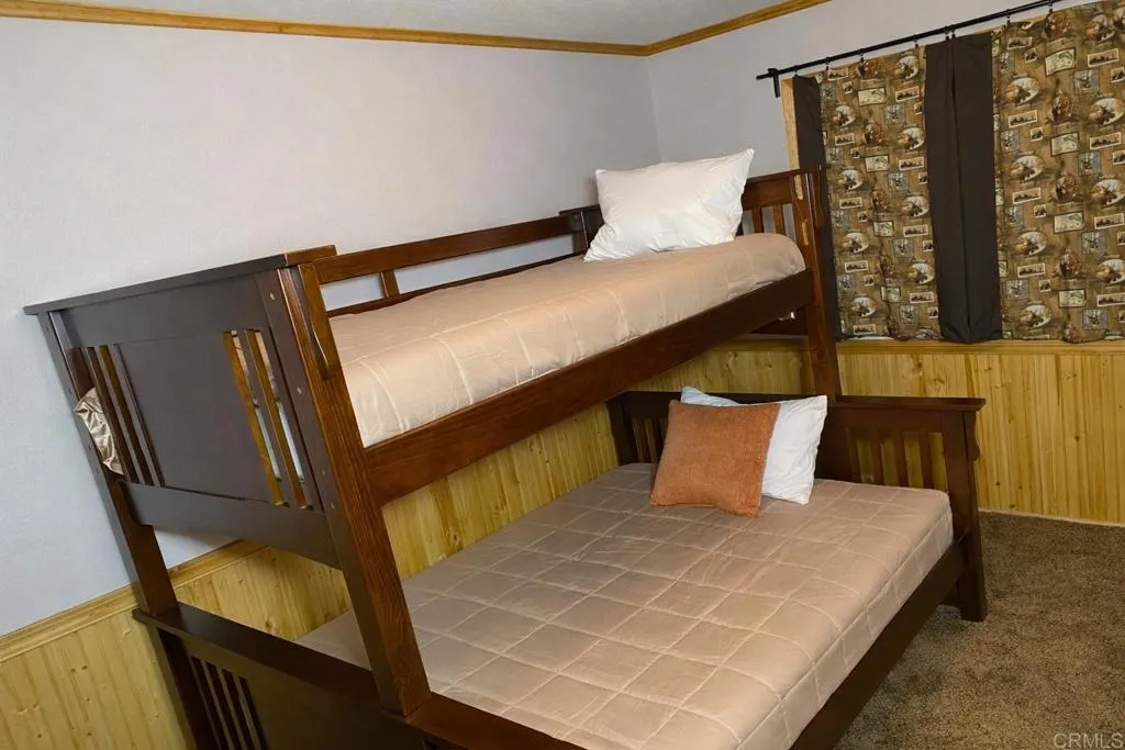 Mountain Retreat with Bear Mountain & Golf Course Views Sleeps 12! Located directly across from Hole #5 of Bear Mountain Golf Course, this spacious Big Bear getaway offers panoramic mountain views, walking distance to the ski shuttle, and room to sleep 12 in beds, making it the perfect mountain retreat or vacation rental opportunity. This well-located home offers plenty of space for family and guests, making it ideal as a primary residence, second home, or short-term rental investment. The main level features two bedrooms and a full bathroom, along with a large dining area perfect for gathering after enjoying Big Bears year-round outdoor activities. Upstairs youll find a spacious den/lounge area with two master bedrooms on opposite sides and a second full bathroom, offering comfort and privacy for larger groups. For entertainment, enjoy your private indoor game room, a great feature for hosting family and friends. The property also includes a rare 4-car tandem garage, with additional access doors leading to the backyard and side yard, plus an attached storage shed ideal for mountain gear and equipment. Outdoor living is a highlight with a large backyard perfect for relaxing or entertaining. The front yard seating area with a fire pit creates a welcoming space ideal for barbecues, gatherings, and cozy mountain evenings. Located within walking distance to the ski resort shuttle, you can easily hop on with your skis or snowboard and ride to Bear Mountain Resort, then return home after a full day on the slopes. Enjoy the best of Big Bear living with golf, skiing, hiking, and b