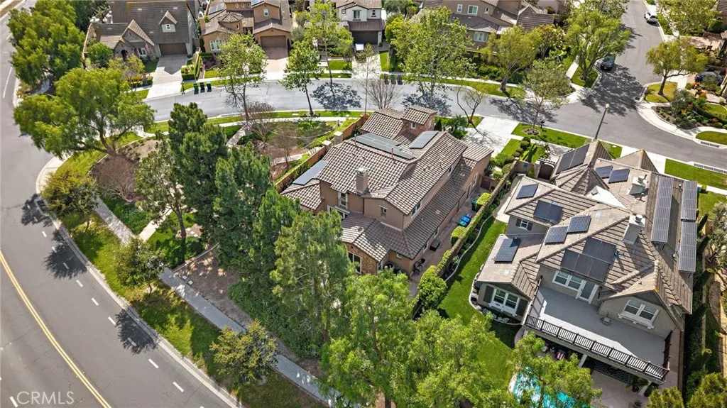 Discover luxury living in the guard-gated community of Covenant Hills in Ladera Ranch. Situated on a prime ~8,000 sq ft corner lot with only one neighboring home and a beautiful greenbelt alongside, this ~3,700 sq ft residence offers exceptional privacy and direct access to a nearby park from the courtyard. The home features 4 bedrooms and 4 bathrooms, including a spacious main-level primary suite with direct access to the patio and backyard. The main level also offers a grand formal living room, dining room, and an office nook opening to a charming courtyard with a fountain. The inviting family room with fireplace opens to the kitchen, creating a great space for everyday living and entertaining. The kitchen features granite countertops, high-end stainless steel appliances, and ample cabinetry. Upstairs includes three generously sized bedrooms and a large loft with beautiful park views, ideal for a media room, office, or additional living space. Outdoor living is equally impressive with a gated entry courtyard and a private backyard featuring updated hardscaping, a gas BBQ island, and an outdoor fireplace perfect for gatherings and relaxation. Additional features include a three-car garage with EV charging, plantation shutters, new laminate flooring, and two newer AC units (separate systems for upstairs and downstairs) for optimal comfort and efficiency. The home also includes a solar system under a prepaid lease with no monthly payment, helping keep electricity costs low, with the agreement to transfer to the buyer at close of escrow. Residents of Covenant Hills enjoy reso