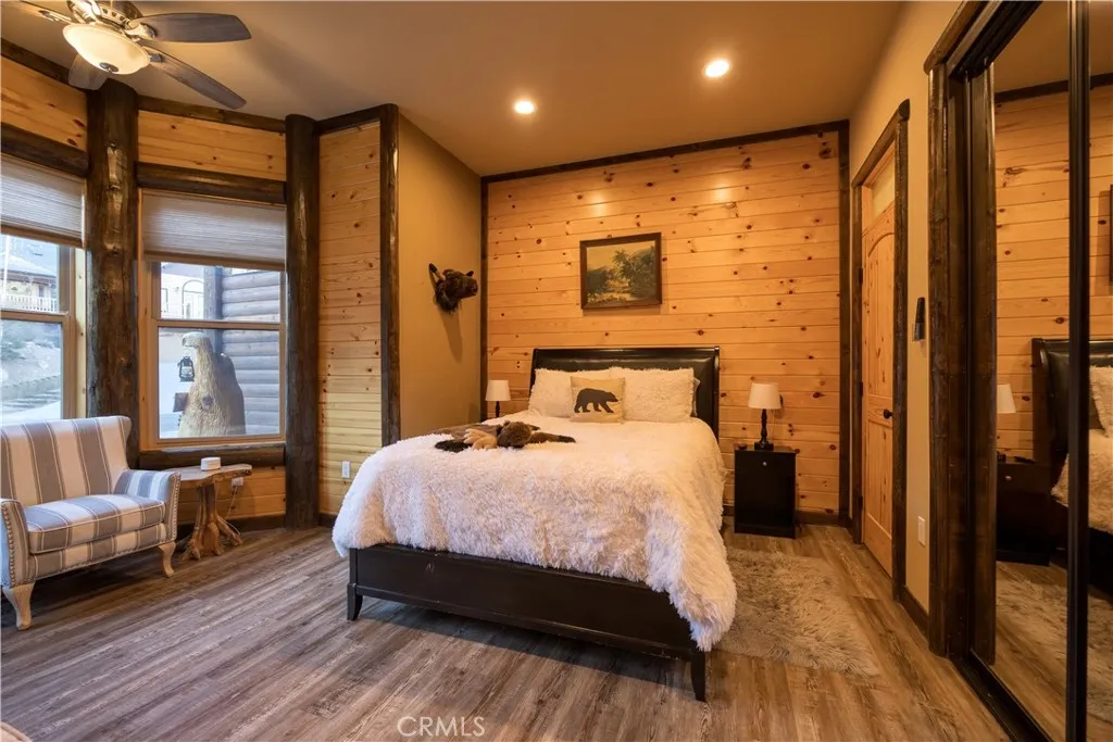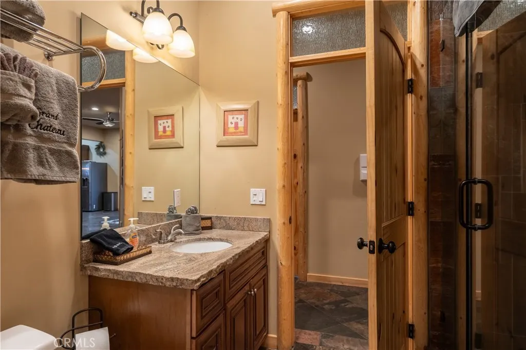 Welcome to Big Bears Grand Chateau, an extraordinary mountain retreat designed for unforgettable gatherings and luxurious alpine living. Spanning approximately 4,500 sq. ft. with the garage conversion, this impressive multi-family lodge blends timeless rustic charm with modern comforts, featuring soaring vaulted ceilings, warm cabin accents, and expansive living spaces for entertaining. Thoughtfully designed for privacy and comfort, both levels feature spacious primary suites with indulgent jetted tubs, while every bedroom enjoys direct access to a bathroom, creating a true retreat-style experience for family and guests alike. At the heart of the home, the chef-ready kitchen flows seamlessly into a generous dining area and grand living room, where a dramatic stone fireplace creates the perfect gathering place after a day on the slopes. Entertainment continues in the climate-controlled game room, created from the converted two-car garage and complete with a pool table, air hockey, and classic jukebox, making it the perfect setting for lively game nights and relaxed gatherings. Step outside to the expansive back deck, where breathtaking alpine views set the stage for year-round outdoor enjoyment. Relax beneath overhead heaters, unwind in the spacious outdoor hot tub, or gather around the firepit on the cozy veranda for the ultimate aprs-ski experience under the mountain stars. Ideally located within walking distance to Oktoberfest and Big Bear Snow Play, and just minutes from ski resorts, the lake, shopping, dining, and only 10 minutes to Big Bear Village, this property offer