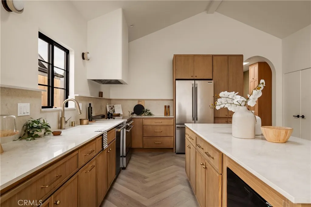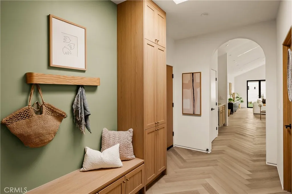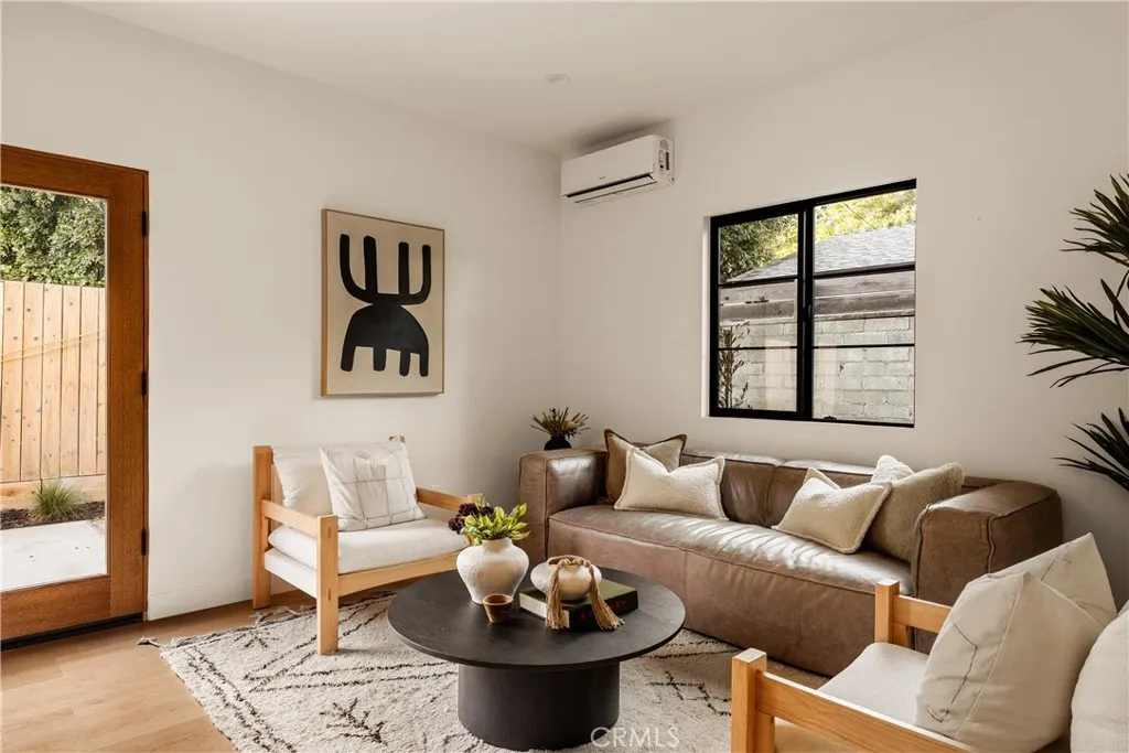 This brand-new construction stunner in a coveted pocket of Van Nuys bordering the prestigious Midvale Estates offers a quintessential blend of contemporary, understated luxury with indoor and outdoor California living at its core. Step inside and exquisite details in the formal entry signal immediately that you've arrived at someplace special herringbone flooring, natural wood accents, built-in storage and seating, all illuminated by soft natural light from the sky above that creates the warmest of welcomes. A grand archway pulls you into the heart of the home: an expansive living space with soaring vaulted ceilings and a case study in open floor plan design. Bi-fold patio doors in the living room tuck away from sight, revealing a fully landscaped oasis and an entertainer's dream where al fresco dining, lounging and play beckon. The chef's kitchen is optimized for cooking, hosting and entertaining, outfitted with professional-grade appliances, natural oak cabinets, marble countertops, a large kitchen island and wet bar. Retreat to the primary bedroom, a quiet sanctuary featuring a spa-style ensuite bathroom with a full-size soaking tub, large walk-in closet and pocket doors that open directly to the backyard amenities. Two more generously sized bedrooms and a versatile den/office that can also double as a 4th bedroom, round out the main 4 bed / 2.5 baths / 1,931 sf residence. At the rear of the property sits a 2 bed / 2 bath / 749 sf ADU with its own address, private entrance and separate electrical meter, smartly designed for additional living/flex space or to be easily f