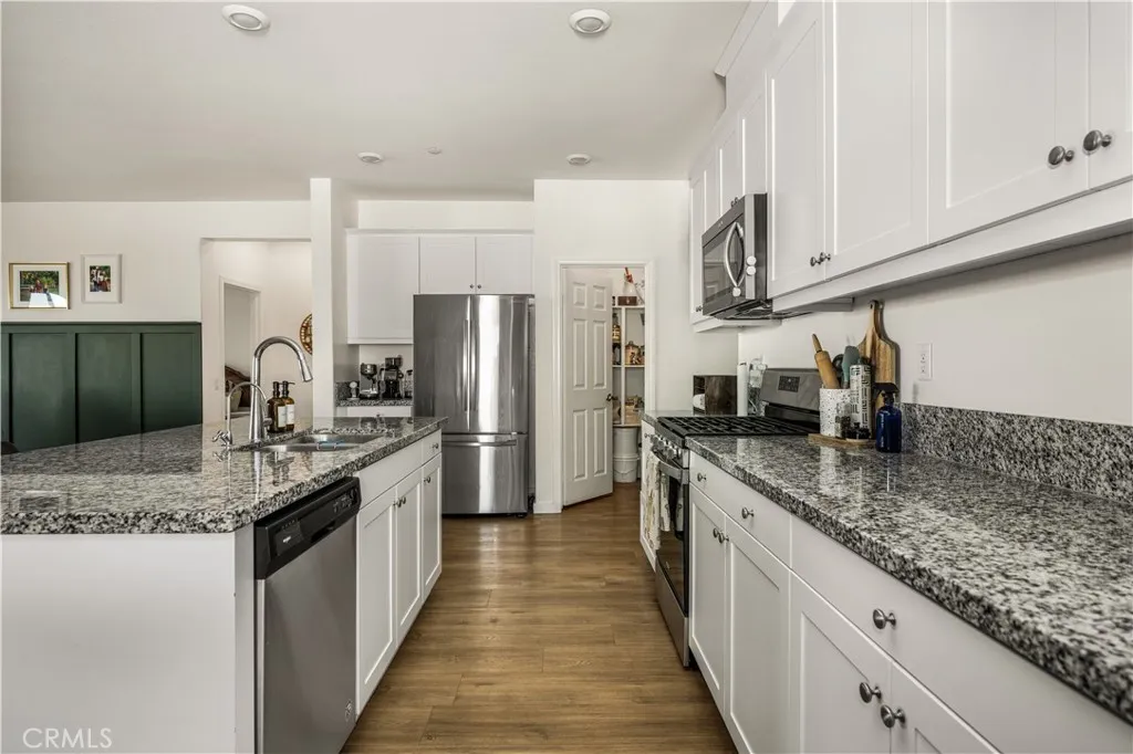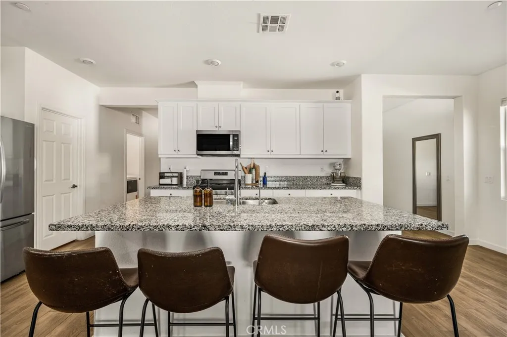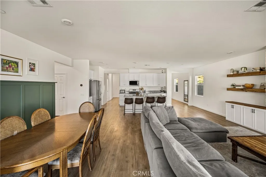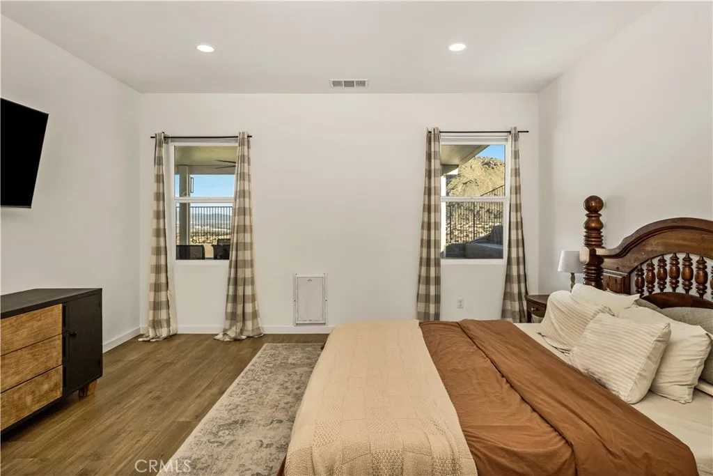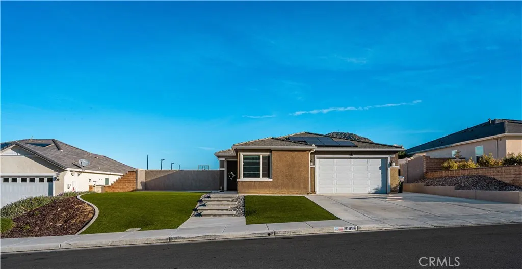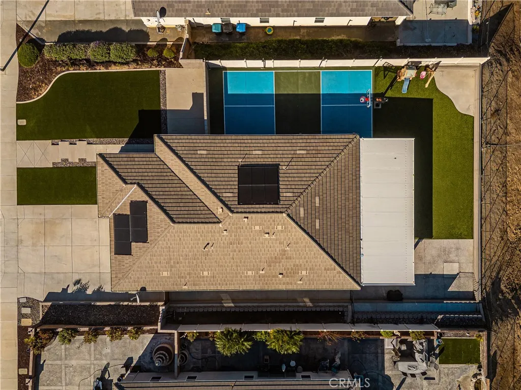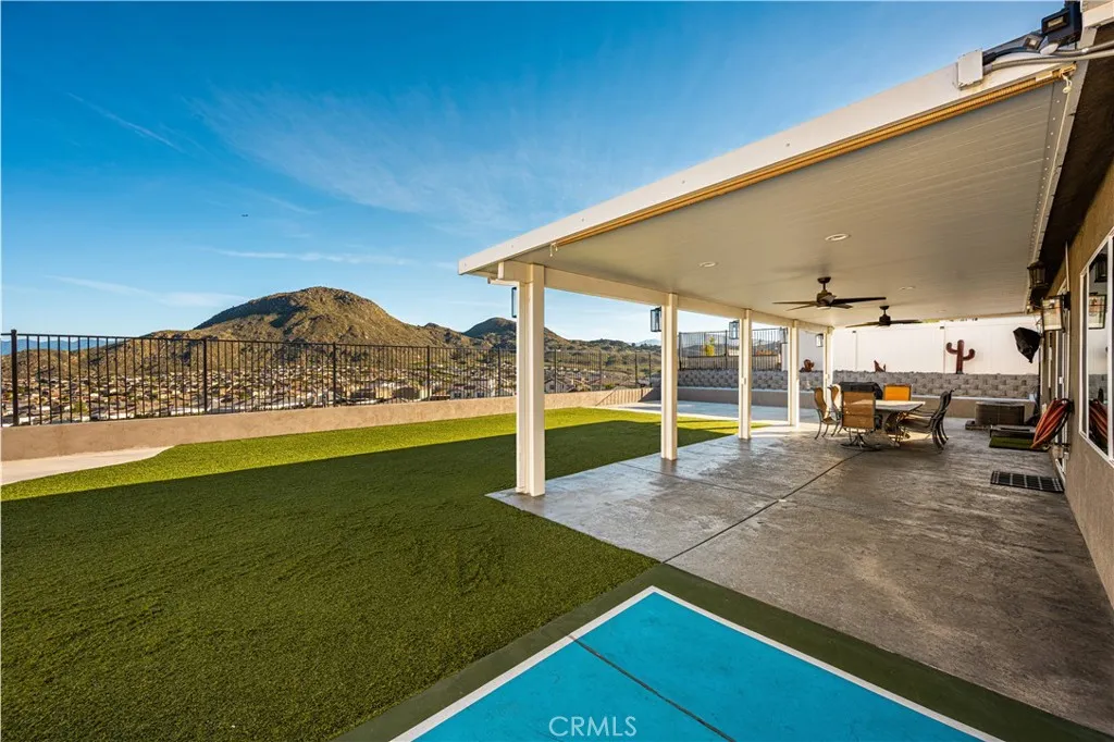 Welcome to 20996 Mountain Gate Drive, a masterfully designed single level VIEW property built in 2020 that perfectly blends modern efficiency with an indoor outdoor lifestyle. Located in the highly desired Spring Mountain Ranch community in Riverside, sitting on over a quarter of an acre of land, this 4 bedroom home is framed by majestic mountain vistas from both the front and the rear. Step inside to discover an airy, open concept floor plan featuring soaring 9 foot ceilings and sleek recessed lighting throughout. The heart of the home is the expansive Great Room, anchored by a dramatic floor to ceiling stack stone surround and a high efficiency electric fireplace. This space flows seamlessly into the backyard, making it an entertainers dream. The thoughtful layout provides maximum privacy, with the primary en suite tucked away at the rear of the home. This private retreat features a spacious walk in closet and a remodeled bath complete with a walk in shower and a separate soaking tub. The other three bedrooms and guest bath occupy their own wing at the front of the house. Nearby, the large laundry room offers additional storage and ample space for an extra refrigerator. The backyard is a true private resort. Take in the fabulous 180 degree mountain views with ideal North exposure under your premium Alumawood patio cover, complete with integrated lighting and a ceiling fan. Active living is built in with your very own private pickleball court and a lighted half basketball court. The low maintenance grounds feature high quality turf and stamped concrete, plus a dedicated si