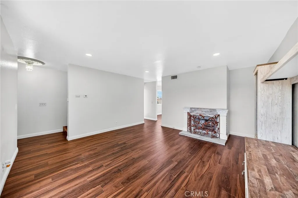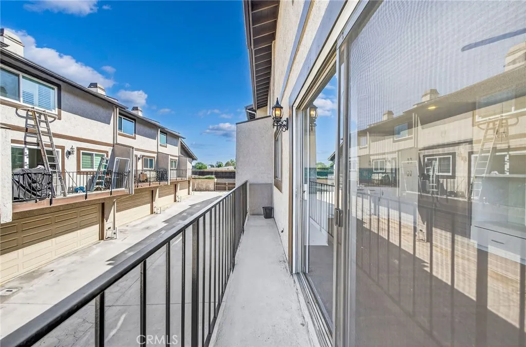 Welcome to this beautifully updated corner-unit townhome located at 764 N Glendora Ave in Covina, ideally positioned directly across from a park and offering abundant natural light and scenic greenbelt views. The entire home has been updated and well maintained. Improvements include a newer HVAC system (air conditioning and heating), new flooring, fresh interior paint, and general updates throughout, creating a clean and modern feel. The main entry opens to a functional layout with stairs leading to the upper level and a spacious living room featuring a cozy fireplace and ample space for an entertainment center. The living area flows seamlessly into the dining space and kitchen, where a large window overlooking the park fills the home with natural light. A sliding glass door provides access to a private balcony, perfect for relaxing outdoors. The updated kitchen features quartz countertops, white cabinetry, recessed lighting, a ventilation hood above the stove, and an eye-catching aqua tile backsplash, offering both style and functionality. The lower level includes a versatile bonus room that doubles as a spacious laundry area, complete with gas hookup and 220V electrical outlet for an electric dryer. This level also provides direct access to the attached two-car garage with side-by-side parking. Upstairs, both bedrooms feature vaulted ceilings that enhance the sense of space and openness. The primary bathroom offers marble-style tile flooring and shower surround, quartz-style countertop, and updated cabinetry. The secondary bedroom is freshly painted and filled with natura