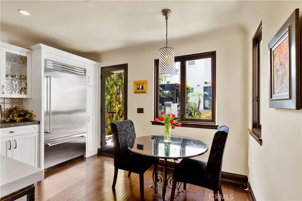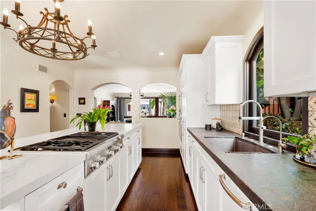 Situated in the charming Belmont Heights neighborhood, this stunning custom Spanish home includes a 4 bedroom main house with a dedicated office, along with a separate 2 bedroom, 2 bath ADU above the garage. Built by a high-end builder, the property showcases exceptional craftsmanship, rich architectural detail, and thoughtfully selected finishes throughout. With dramatic ceiling heights, intricate moldings, custom niches, built-in cabinetry, beautiful tilework, rich hardwood floors, and distinctive lighting, the home carries the timeless character and elegance of old Hollywood Spanish design. The main living areas include a welcoming family/media room, a stunning step-down living room with soaring ceilings and a wood-burning fireplace, and a beautifully designed kitchen that flows seamlessly into the dining space. The chef's kitchen features a large island, quartz countertops, upgraded stainless steel appliances, distinctive tilework, and leathered granite surfaces. French doors open from the dining room to a beautifully designed backyard created for entertaining, complete with a full outdoor kitchen and dual gas grills. A striking staircase with Spanish tile risers leads to the upper level, where two spacious secondary bedrooms feature custom built-ins, along with a full-size laundry room, hall bath, and an office with French doors opening to a private deck overlooking the backyard. Entered through double doors, the primary suite is expansive and beautifully appointed, featuring a spa-like bath with dual sinks, a soaking tub, travertine finishes, two full-size walk-in clo