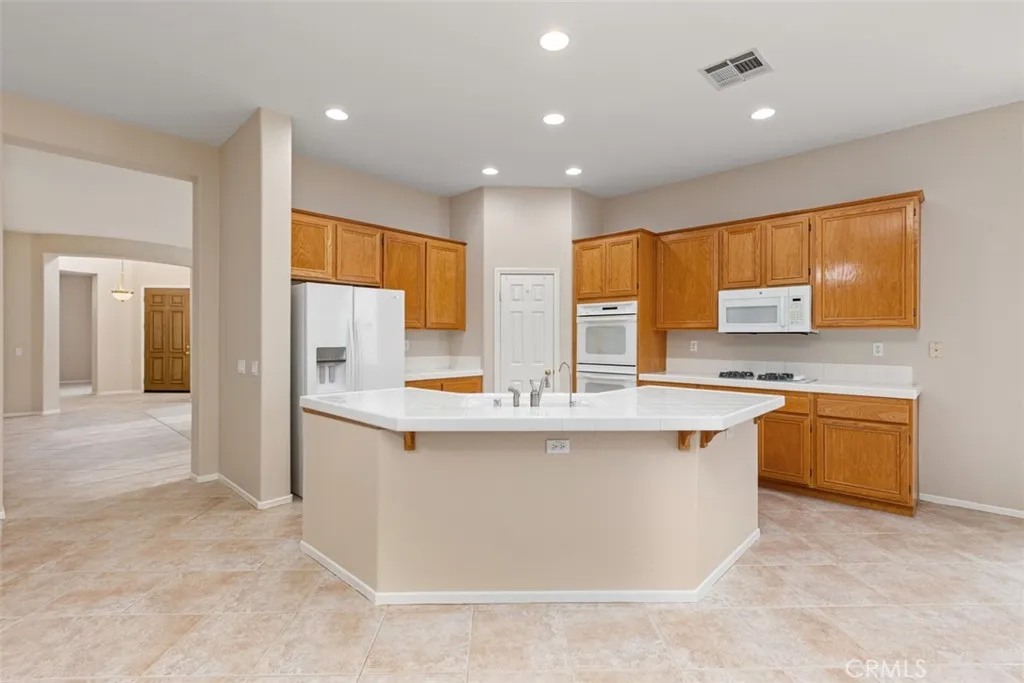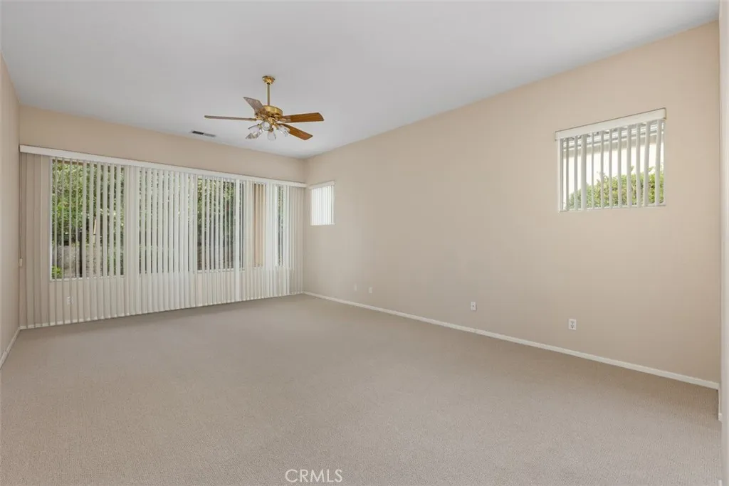 Immaculate Move-In Condition coveted Bellagio model at a premier "Over 55" gate guarded golf resort. Fresh paint inside and out as well as beautiful just installed carpeting. Diagonal tile floors through the traffic areas including the entry, halls, kitchen, dinette and 1/2 bath. From the private front courtyard this home opens into the stunning 2-story artistic turret entry where you can proceed directly from there to the immense office/den/bonus room convertible to a 3rd bedroom, the guest wing or the primary living areas. Bright open living/dining rooms to welcome and impress your relatives and friends. The chief's kitchen features a built-in gas cooktop, double ovens, a big breakfast bar island with sink, dishwasher and additional cabinets to supplement the walls and walls of kitchen cabinets, plus a large walk-in pantry. The kitchen opens to the big dinette with slider to the covered patio and the family room with tile fireplace, ceiling fan and views of a lush green belt. Elegant view master suite with ceiling fan. The master bath has a dual sink vanity, separate tub and shower, privacy commode and huge walk-in closet with mirrored doors. The guest wing includes a generous sized bedroom with ceiling fan, a wall of closets with mirrored doors, a full bath, an entry closet plus storage and linen cabinets. The laundry room has a sink and loads of cabinets. The oversized finished garage has storage cabinets galore, room for two big cars plus golf carts and/or a workshop. The private low maintenance rear yard overlooks a lush green belt and has a full width patio under a s