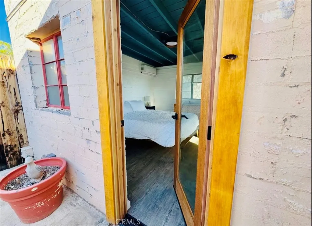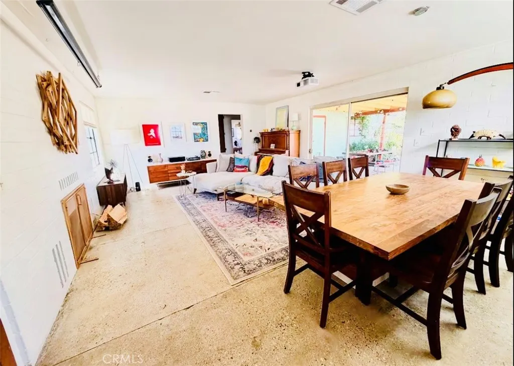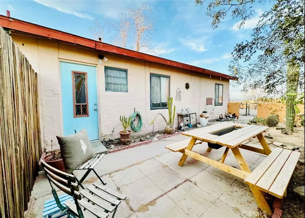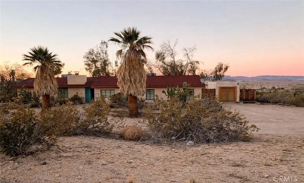 Desert-cool mid-century home on an approx. 1-acre corner lot, reworked for flexible multi-unit living and solid income potential while keeping its original character. The main home is currently set up as two spaces: one side offers a 3 bedroom, 1 bathroom layout with generous living and dining areas, and the other side is a 1 bedroom, 1 bathroom unit that works well for guests, long-term tenants, or a private workspace. The detached garage includes an added bathroom and functions as a studio-style third space, ideal for visitors, creative use, or potential rental. In total, the property lives as 5 bedrooms and 3 bathrooms; square footage is permitted per prior records. Solid masonry construction, simple clean lines, and a blend of original details with practical updates make this property feel both authentic and livable for todays buyer, with plenty of room outside for parking, entertaining, and future ideas on the approx. 1-acre lot, close to the USMC base, downtown Twentynine Palms, and Joshua Tree National Parkbuyer to verify.