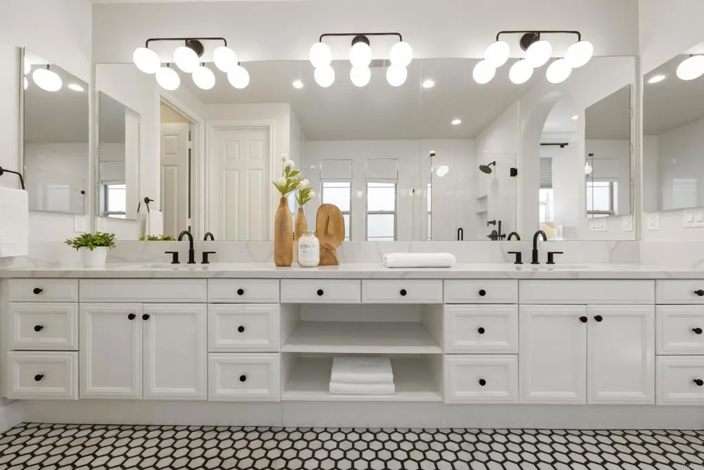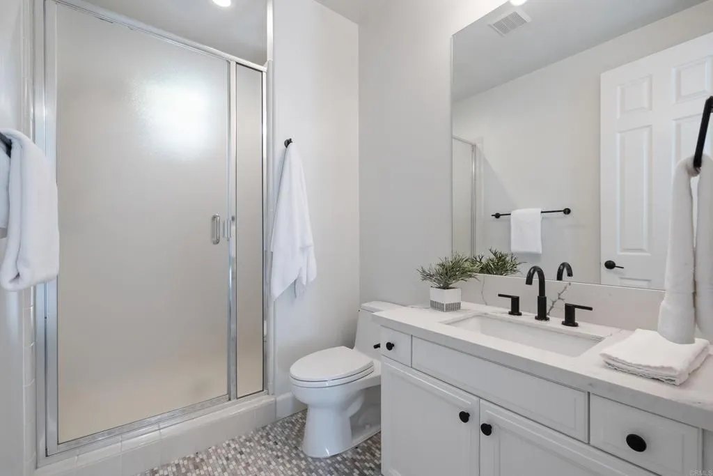 Beautifully remodeled Beacons Point in Liberty Station offers the perfect blend of modern finishes, functional layout, and charming Point Loma living. The open-concept floor plan seamlessly connects the living, dining, and kitchen areasideal for entertaining and everyday living. The beautifully renovated kitchen showcases quartz countertops and stainless steel appliances, all complemented by new flooring and designer fixtures, as well as updated bathrooms with contemporary finishes. Upstairs, the primary suite is a true spa-like retreat, complete with a soaking tub, glass-enclosed walk-in shower, dual walk-in closets, and a retreat area with Juliet balcony. A secondary upstairs bedroom and a convenient laundry room add to the homes thoughtful layout. Downstairs bedroom offers a French door connection to the front patio, creating a unique indoor/outdoor flow for the downstairs living. Outdoor spaces shine with an entertainers courtyard featuring Trex decking and a gas fire pit, while the expanded front patio offers additional room to relax and enjoy the charm of Beacons Point. Additional features include a tankless water heater, and a 2-car garage with epoxy flooring and overhead storage racks. Ideally located in the heart of Liberty Station, just moments from parks, waterfront paths, top dining, shopping, Trader Joes, and Vonsthis home captures the very best of Point Loma living.