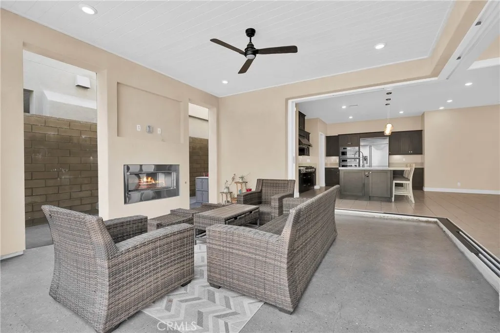 Rare Corner Home Across from the Future Great Park Botanical Garden. Set on a premium corner lot facing the future Botanical Garden and lake district of Great Park, this bright and airy home offers a rare combination of location, space, and lifestyle. Imagine stepping outside your front door and being just minutes away from the Bosque Trail, Cadence Community Park, top-rated Irvine schools, and miles of greenbelts and walking paths. The upcoming Canopy lifestyle centerhome to Da Tong Hua Supermarket, dining, and boutiqueswill open in 2026 just a short stroll away. The home itself is designed for modern California living. The main level features a sun-filled open-concept kitchen, dining, and living area, perfectly connected for everyday living and entertaining. Pocket sliding doors open wide to the backyard, creating a seamless indoor-outdoor experience. Outside, the backyard fireplace sets the scene for cozy evenings, weekend gatherings, or quiet moments under the stars. A downstairs bedroom with full bath offers flexible livingperfect for guests, in-laws, or a private workspace. Upstairs, the spacious primary suite becomes your personal retreat, complete with a spa-inspired bathroom and two large closets thoughtfully designed for both partners. Two additional bedrooms each feature their own private bathroom, offering comfort and privacy for family members. On the third level, a bright loft with powder room provides incredible flexibility ideal as a media lounge, office, yoga studio, playroom, or creative studio. Step onto the oversized private balcony and enjoy open views