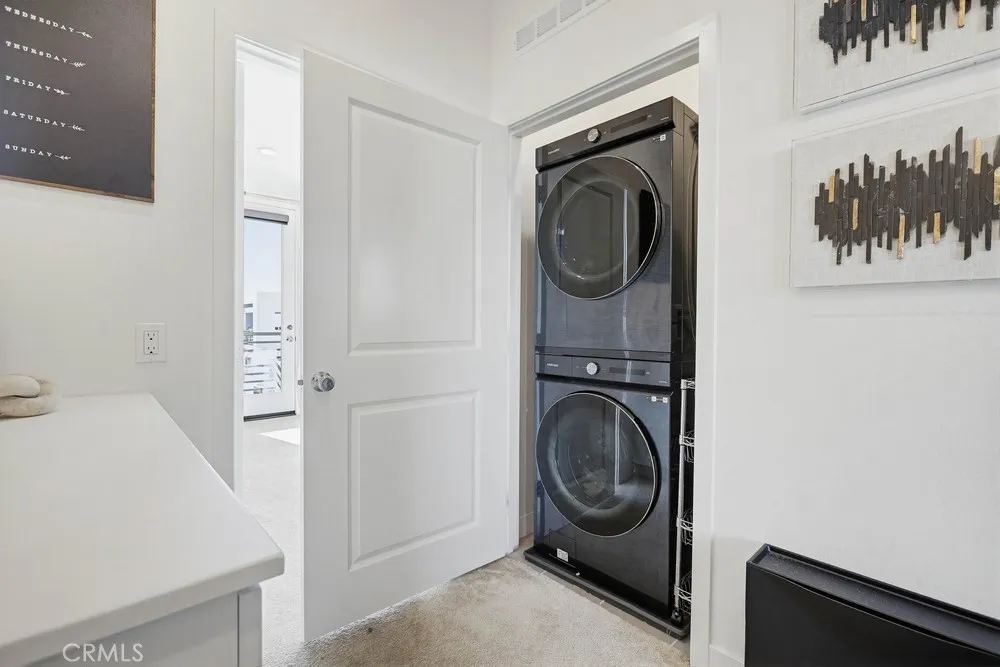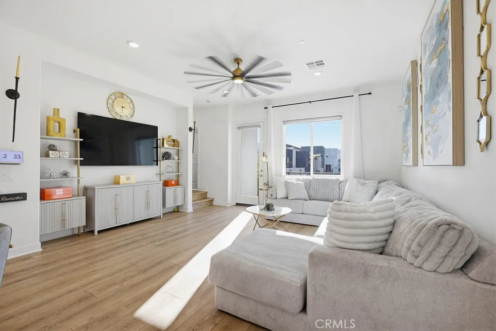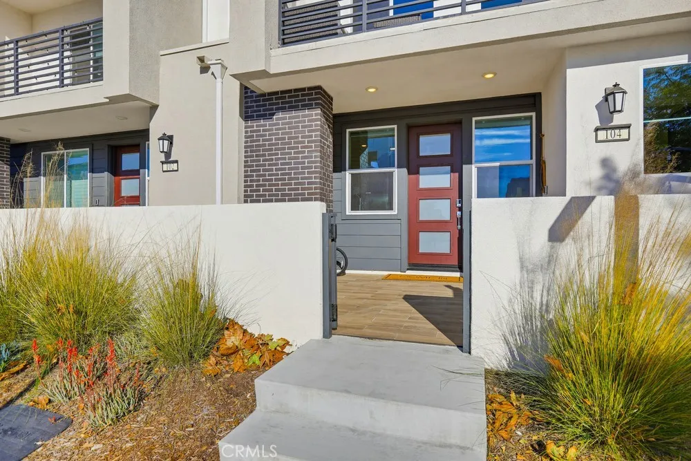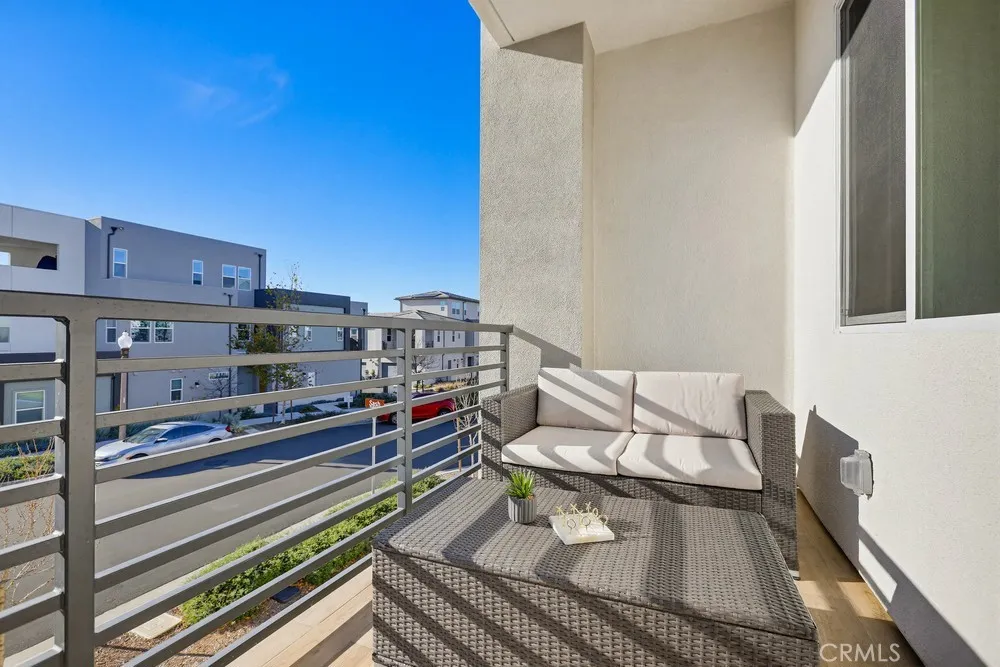MOTIVATED SELLERS!!! 2 BEDROOM + OFFICE FLEX SPACE in a prime location!!! Located within Irvines Great Park community, this contemporary three-level home offers a flexible layout and a clean, modern aesthetic throughout. Updated flooring spans all levels and outdoor space, creating a cohesive and polished feel. Part of the new desirable Mulberry Collection in Solis Park, the property is only steps away from Portola High school and Solis K-8 school. The first level features a versatile entry-level flex space ideal for a home office, den, or bonus room, along with access to a patio. This level also includes a dedicated storage room and a side-by-side two-car garage with additional storage and an EV charger. The second level serves as the main living area, featuring an open-concept kitchen, dining, and living space enhanced by recessed lighting and updated flooring. The kitchen is finished with white shaker cabinetry, stone countertops, and a large island. A balcony extends the living space outdoors, and a convenient powder bathroom completes this level. On the third floor are two bedrooms, each with its own ensuite upgraded bathroom. One bedroom includes a walk-in closet, while the primary suite features a spacious walk-in closet, dual-sink vanity, updated finishes, and access to a private balcony. The double stack laundry is conveniently located on the same floor as the bedrooms. Located in the heart of Orange County Great Park with acess to resort-style amentites including parks. Residents enjoy pools, fitness center, tennis and basketball courts, clubrooms and BBQ areas. M