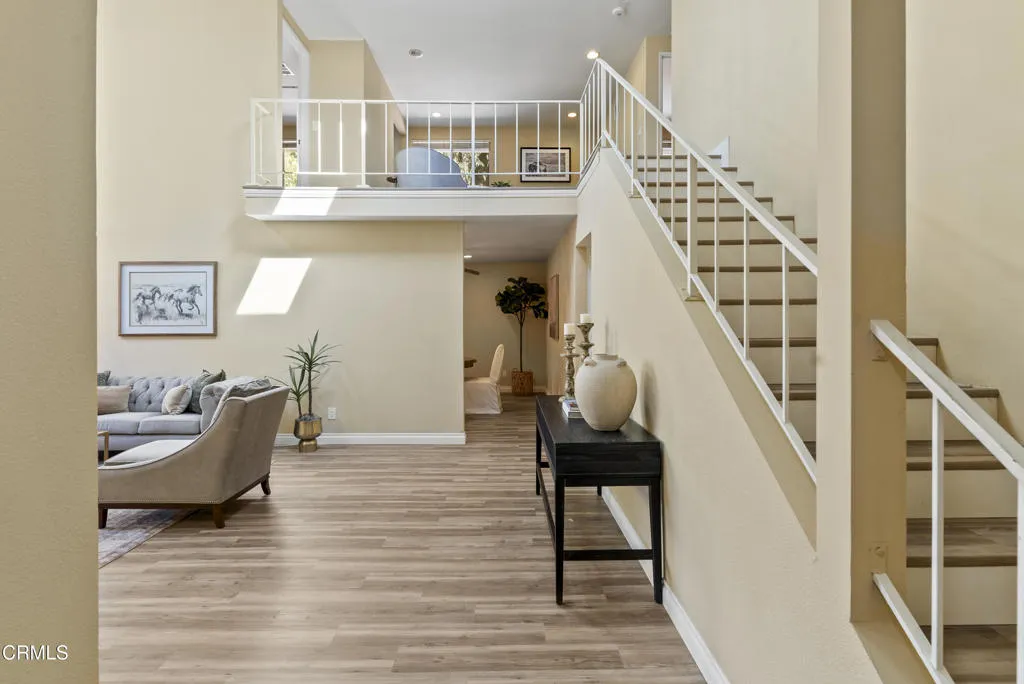 Spacious two-story home located in a quiet neighborhood of Agoura Hills, near parks, shopping, and just a short drive to the beach. Filled with natural light, the home features soaring cathedral ceilings, two skylights, and a fireplace that anchors the main living space.The open-concept kitchen offers generous cabinetry, ample storage, granite countertops, and a functional layout that flows seamlessly into the living and dining areas, ideal for both everyday living and entertaining. Sliding doors open to a private backyard with a wraparound brick patio, garden-ready side yard, and mature fruit trees, including a pomegranate tree. A natural hillside provides afternoon shade, creating a comfortable outdoor setting.Upstairs, two well-sized bedrooms are complemented by a versatile loft overlooking the living room, perfect for a home office, additional living space, or workout area. Downstairs includes two spacious bedrooms, including a primary suite with a large walk-in closet.Bathrooms feature granite finishes, and the overall layout offers flexibility for a variety of living needs.A well-designed home offering space, privacy, and convenience in a desirable location.