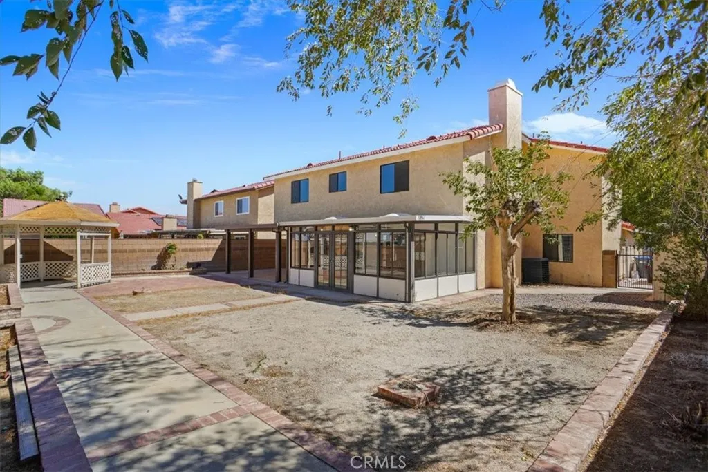 Amazing 4-Bedroom Fully Upgraded Home with RV Access Welcome to this beautifully upgraded two-story home featuring four spacious bedrooms plus a downstairs bonus room or fifth bedroom and three bathrooms. From the moment you arrive, the curb appeal stands out with used-brick hardscape and a gated RV access. Inside, the home offers a bright and open floor plan. The large living room boasts vaulted ceilings and new laminate flooring, leading to a formal dining room perfect for gatherings. The kitchen has been completely remodeled with brand-new cabinetry, soft-close drawers, quartz countertops, stainless-steel hardware, a five-burner gas range, built-in microwave, dishwasher, and stylish finishes. Adjacent is the cozy family room with a gas fireplace and built-in bar for entertaining. The downstairs also includes a guest bedroom and a convenient three-quarter bath. Upstairs, the spacious primary suite features a walk-in closet, ceiling fan, and a beautifully updated bathroom with dual sinks, granite countertops, fresh paint, and new carpet. Three additional bedrooms upstairs all include ceiling fans, new carpeting, and modern paint. An enclosed patio measuring approximately 13 by 20 feet extends the living space, with an additional covered patio just beyond. The backyard showcases extensive brickwork with planters and walkways, while custom four-inch baseboards throughout the interior add to the homes polished look. With block walls providing privacy and a location close to schools, shopping, and parks, this home is move-in ready and combines quality upgrades with thoughtful