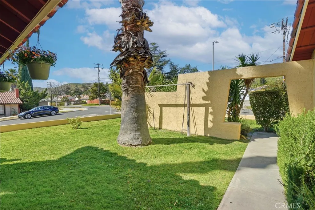 Welcome to this gorgeous 2-story View Home, tucked away on a large sweeping corner lot, located in a prime "Simi Valley" neighborhood. Upon entry, you're welcomed with a double door entry showcasing soaring ceilings & beautiful designer tile/wood laminate floors that flow throughout. The inviting living room is highlighted with smoothly finished ceilings & lots of natural light. The cook's kitchen is equipped with neutral cabinets, stone countertops, and an eating area that opens to the cozy family room featuring a beautiful stone fireplace & walls of glass overlooking the private backyard. The elegant primary suite offers high ceilings, a walk-in closet, a private balcony with gorgeous panoramic views & an ensuite bathroom that includes ungraded tile floors, a decorative vanity & walk-in shower. The spacious secondary bedrooms are adjacent to the tastefully upgraded hallway bathroom. Step outside and enjoy your private outdoor living area with a wrap-around backyard featuring rolling green grass offering plenty of room to entertain your family & friends. Additional highlights include an upgraded HVAC System, downstairs HOME OFFICE/5th bedroom, new interior paint, modern fixtures & hardware, large driveway with RV parking & finished 3 car garage, partially CONVERTED TO A HUGE BONUS ROOM. This GEM is the one you've been waiting for!
