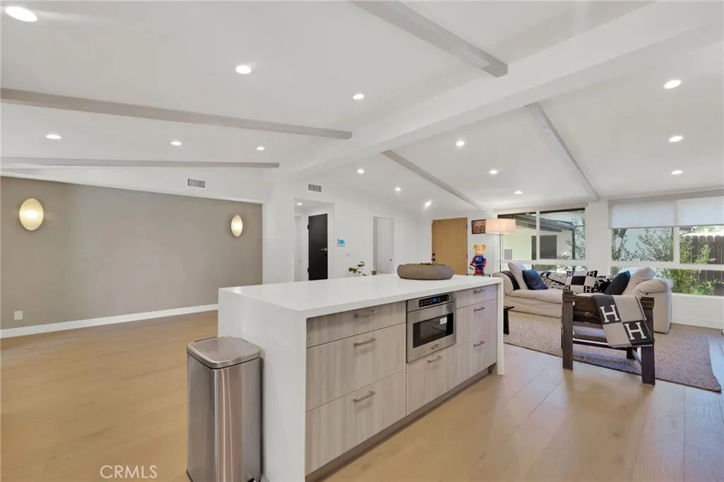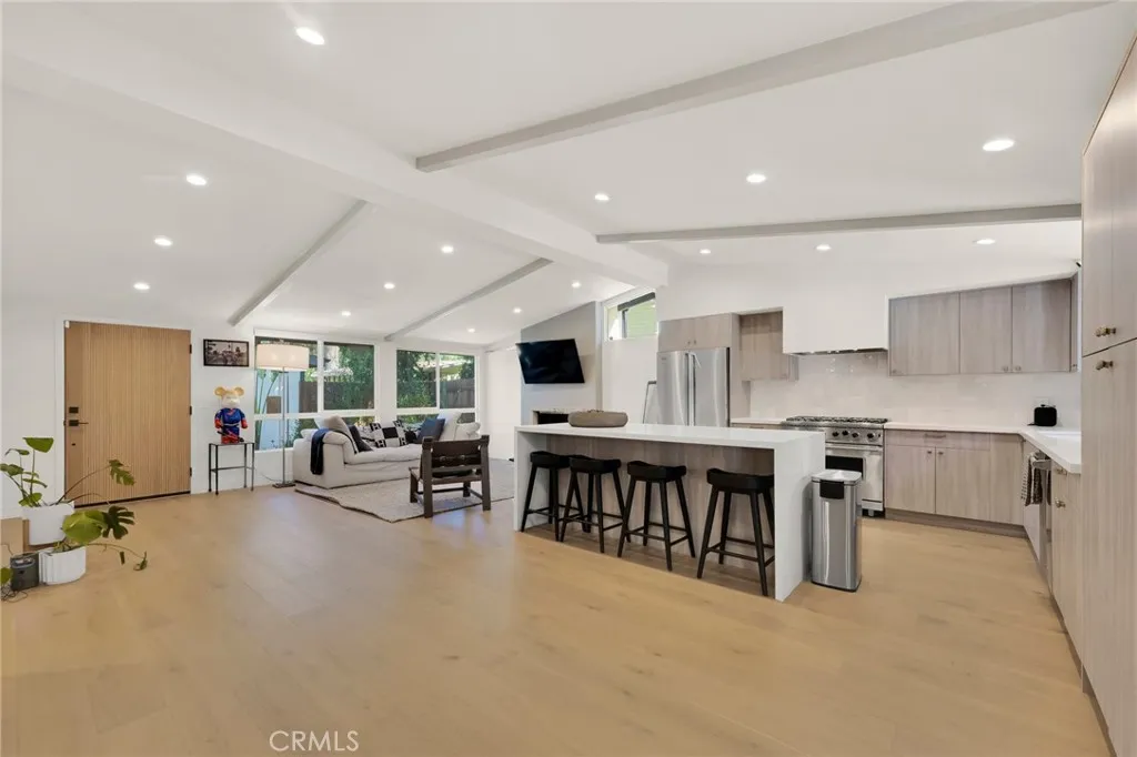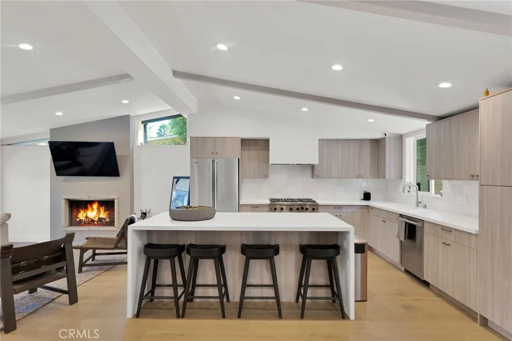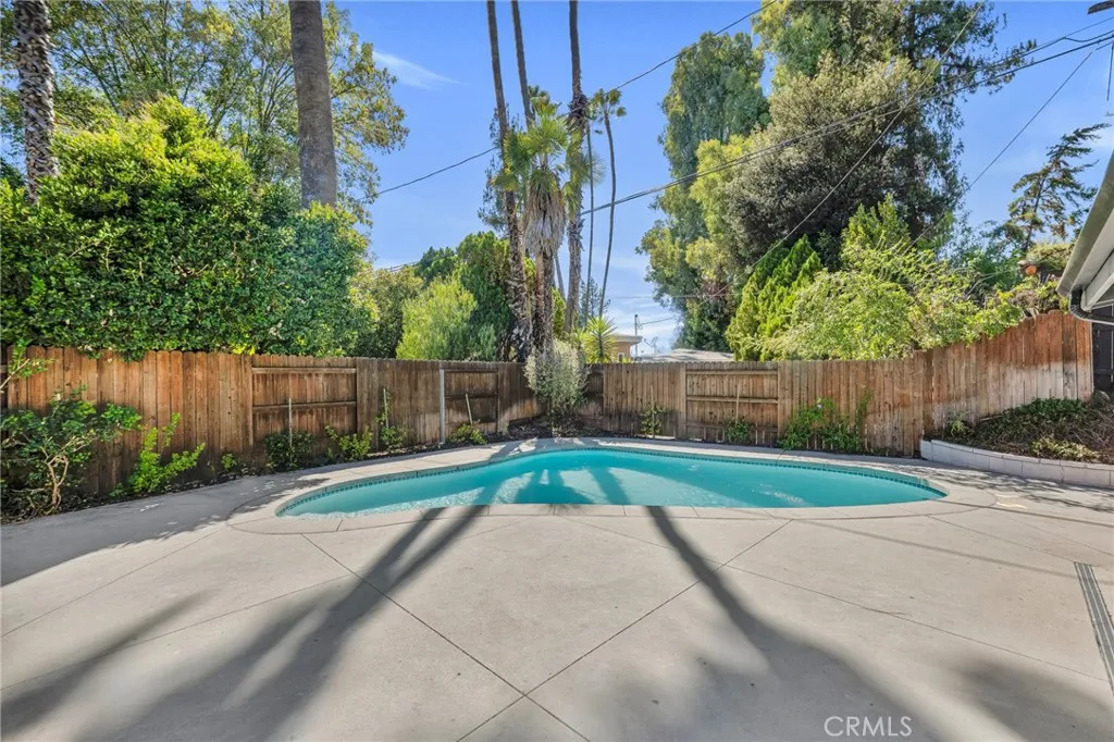 Experience the perfect blend of style and comfort in this beautifully reimagined mid-century modern single-story pool home, ideally situated south of the boulevard in a beautiful sought-after Woodland Hills neighborhood. Originally renovated about three years ago (2023) with high-end finishes and thoughtful design, the home has been lovingly maintained to preserve its like-new feel. Step through a lush, private courtyard into a light-filled living space with soaring beam ceilings and courtyard views. The open-concept great room features European engineered wood floors, an updated fireplace, and a dining area ideal for gatherings. The chefs kitchen boasts Viking stainless steel appliances, a generous center island with seating, custom flat-panel cabinetry, quartz counters, and a full-height tile backsplash. Designed for seamless indoor/outdoor living, this 3-bedroom, 2.5-bath home offers a family room that flows to the pool, firepit, and patio, plus a separate grassy yard. The primary suite includes a custom walk-in closet, spa-like en-suite bath, and direct patio access with serene views. A secondary bedroom also opens to the garden. Extensive upgrades from the renovation done in 2023 include designer fixtures, new windows, roof, HVAC, tankless water heater, updated plumbing/electrical, refreshed pool with new coping, plaster, tile, LED lighting, and more. Close to Ventura Blvds dining and shopping, The Village, Westfield Topanga, Calabasas Commons, award-winning schools, beaches, and the 101 Freewaythis home offers a private retreat with unbeatable convenience.