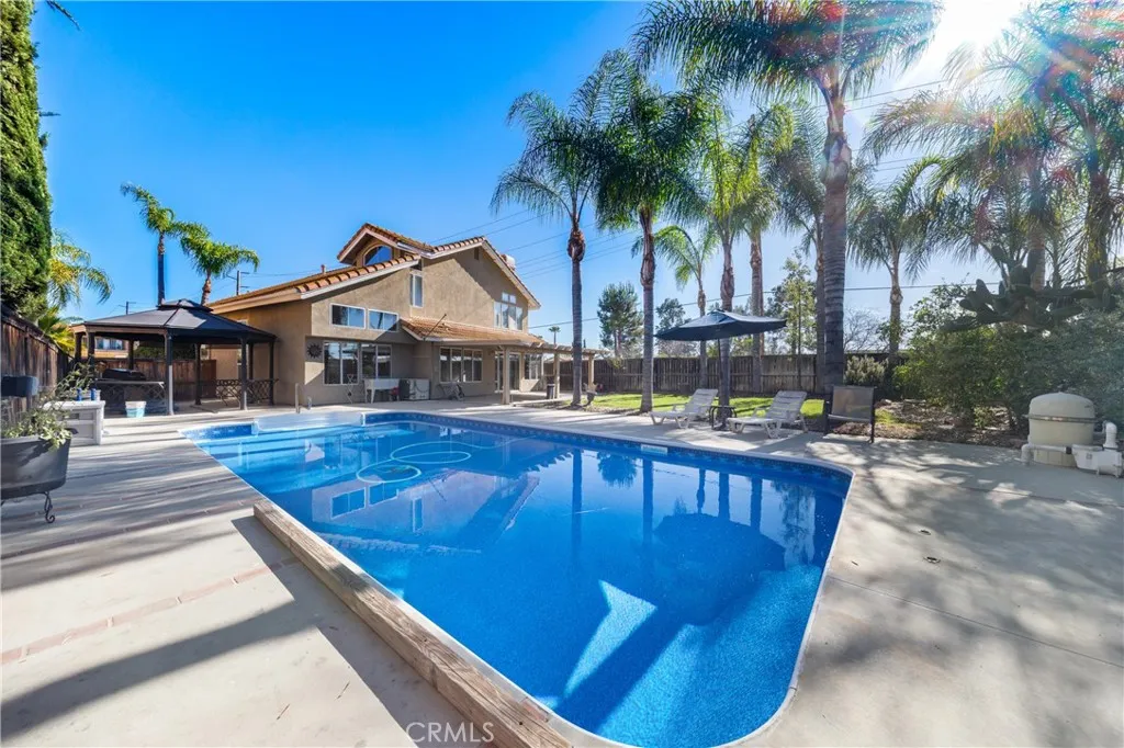 Welcome to 30354 Falcon Point Court, a beautiful pool home ideally situated at the end of a quiet cul-de-sac in Murrieta. This spacious two-story residence offers approximately 2,500 square feet of well-designed living space, featuring 5 bedrooms and 3 bathrooms, including a convenient downstairs bedroom and full bathroomperfect for guests or multi-generational living. The home showcases new upscale vinyl flooring throughout the main level (excluding the downstairs bedroom), custom interior paint, and a light, bright, and airy floor plan. Enjoy comfortable living with central heating and air, ceiling fans throughout, and a cozy gas fireplace in the main living area. Remodeled kitchen is designed for both function and style, offering stainless steel appliances, attractive countertops, and abundant cabinetry for storage. Additional features include some mirrored wardrobe doors, an indoor laundry room, and thoughtful finishes throughout. Situated on a flat and usable 8,712 square foot lot, the property truly shines outdoors. The entertainers backyard features a full Alumawood patio cover and an in-ground lined pool, creating the perfect space for relaxing or hosting gatherings. Both the front and backyard are fully landscaped for added curb appeal and enjoyment. Additional highlights include a 3-car garage with epoxy flooring, rain gutters, and a prime location close to schools, shopping, medical facilities, and convenient freeway access. Walking trail close as well as parks. With low taxes and no HOA, this home offers exceptional value and flexibility. A must-see Murrieta hom