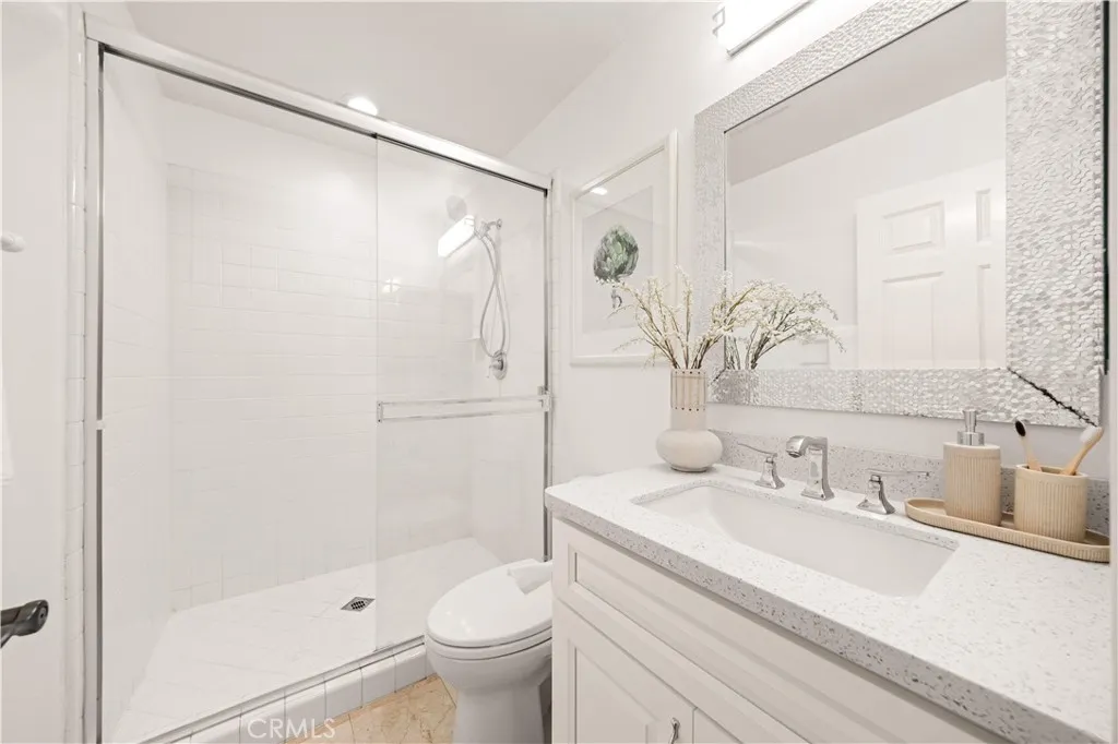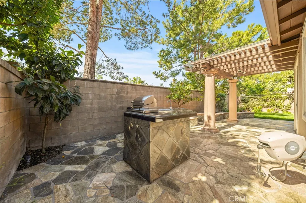 Nestled within the prestigious Northpark Square community of Irvine, this detached single-family home is ideally positioned on a rare single-loaded lot with no neighbors directly behind, offering exceptional privacy and a peaceful setting backing directly to Bella Vista Park. The home features a bright and functional layout with an open living and dining area upon entry, flowing seamlessly into the spacious kitchen with a center island that connects to the family room, creating an ideal space for both everyday living and entertaining. The kitchen also includes recently replaced window glass. A main-level bedroom with a full bathroom provides flexibility for guests or multi-generational living. Upstairs offers a versatile study area, a generously sized primary suite with built-in cabinet storage, and two secondary bedrooms connected by a Jack and Jill bathroom. The home has been thoughtfully upgraded over the years, beginning with recent fresh interior paint. Hardwood flooring and tile run throughout, along with LED recessed lighting, a water filtration system, and an installed solar system. All bathrooms have been remodeled with updated cabinetry, quartz countertops, Hansgrohe fixtures, and smart toilet installations, and the primary suite features an upgraded shower. The epoxy-coated garage, along with extended storage space, adds additional functionality, while both the front and backyard have been refreshed with updated landscaping. The backyard features a built-in barbecue area and fruit trees, adding to the overall outdoor living. Residents enjoy access to resort-style