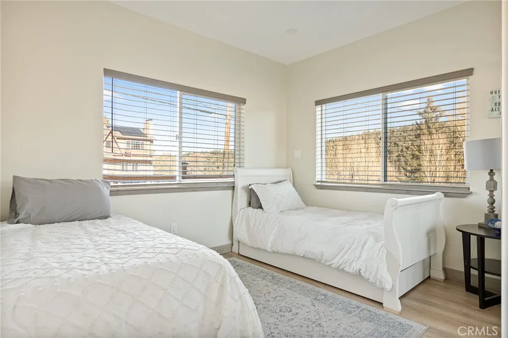 Welcome to your dream mountain retreat designed to comfortably accommodating large groups, making it a perfect gathering place for family and friends after a day of enjoying the lake, slopes, or trails. Nestled in the picturesque landscape of Big Bear, this stunning newer construction (2023) custom home offers tranquility and breathtaking mountain views, with spectacular sunsets painting the sky each evening. Featuring 5 bedrooms which includes an enclosed alcove/loft, at approximately 2379 Sqft with 3.5 baths this home comfortably accommodates large groups and vacation guests, making it an excellent second home or short-term rental investment opportunity. Step inside to discover a spacious and inviting interior filled with natural light and cozy warmth. The open floor plan seamlessly connects the living, dining, and kitchen areas, creating the perfect space for both relaxation and entertaining. Enjoy multiple outdoor living spaces including a front deck, expansive back deck, and upstairs balcony, ideal for taking in the peaceful mountain setting. Additional highlights include a bonus/game room, custom countertops, and furniture included for a turnkey experience, tankless water heater, fire sprinklers and fire-resistant siding for added safety, and an expanded driveway accommodating up to four cars plus a one-car garage. Unwind after a day of adventure in the jacuzzi/spa, perfect after skiing, hiking, or enjoying the lake. With flexible living and multiple sleeping areas, the home is ideal for large family gatherings, shared ownership, or a high-capacity vacation rental tha