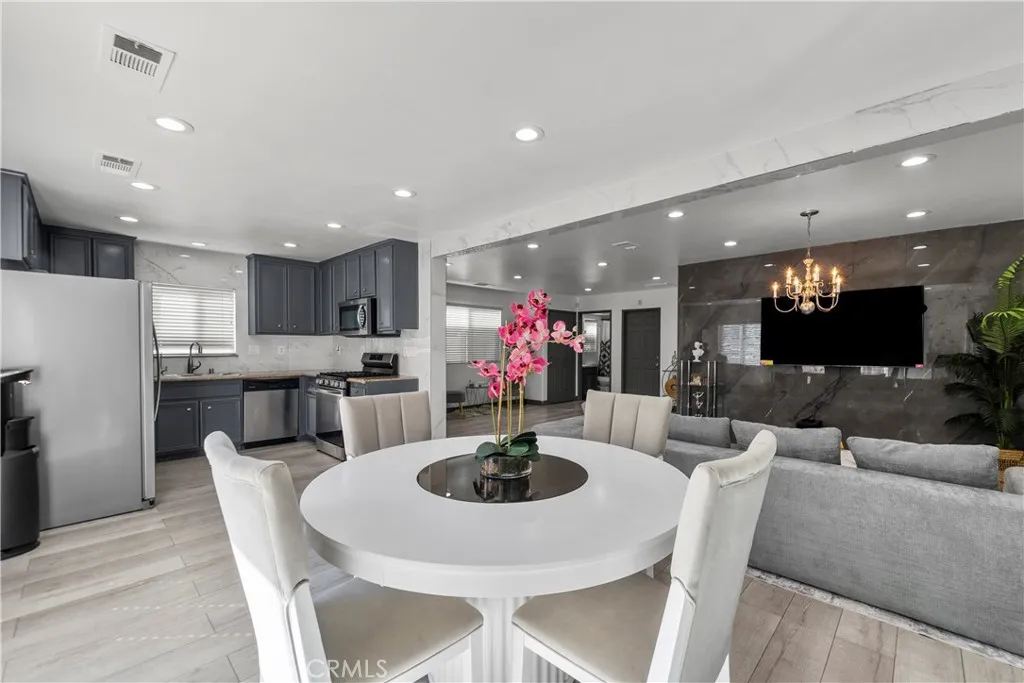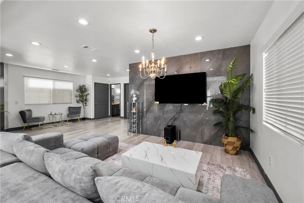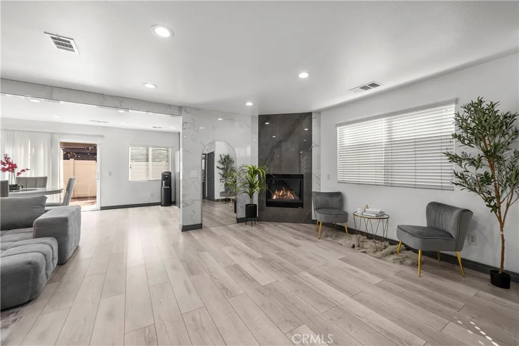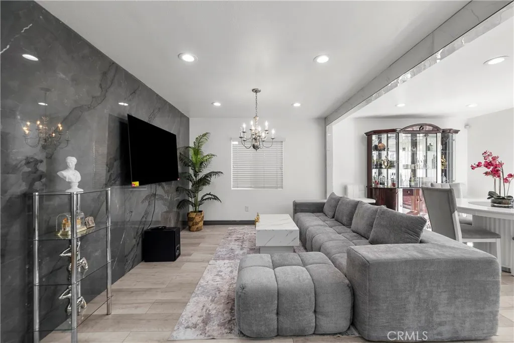 Welcome to this beautifully upgraded freestanding condominium located in a desirable gated community in North Hills. Offering the feel of a single family home, this spacious 4 bedroom, 3 full bath residence features approximately 1,837 square feet of living space and has been thoughtfully updated throughout. Step inside to a light filled open concept floor plan with brand new flooring, recessed lighting, and a seamless flow between the living, dining, and kitchen areas ideal for both everyday living and entertaining. The inviting living room showcases a stunning floor to ceiling marble accent wall with a sleek marbel fireplace and mounted TV, complemented by an elegant chandelier that adds a touch of luxury living. The kitchen features granite countertops, stainless steel appliances, and a striking marble tile backsplash that extends from the counters all the way to the ceiling, creating a modern and upscale design. Upstairs, youll find four large sized bedrooms including a spacious primary suite with a walk in closet and dual vanity bathroom with marbel flooring. Additional features include a two car garage with EV charger, indoor laundry, modern finishes throughout, and a whole house water purification system. Conveniently located near schools, shopping, dining, and with easy access to the 5, 405, and 118 freeways, this move in ready home offers comfort, style, and convenience.
