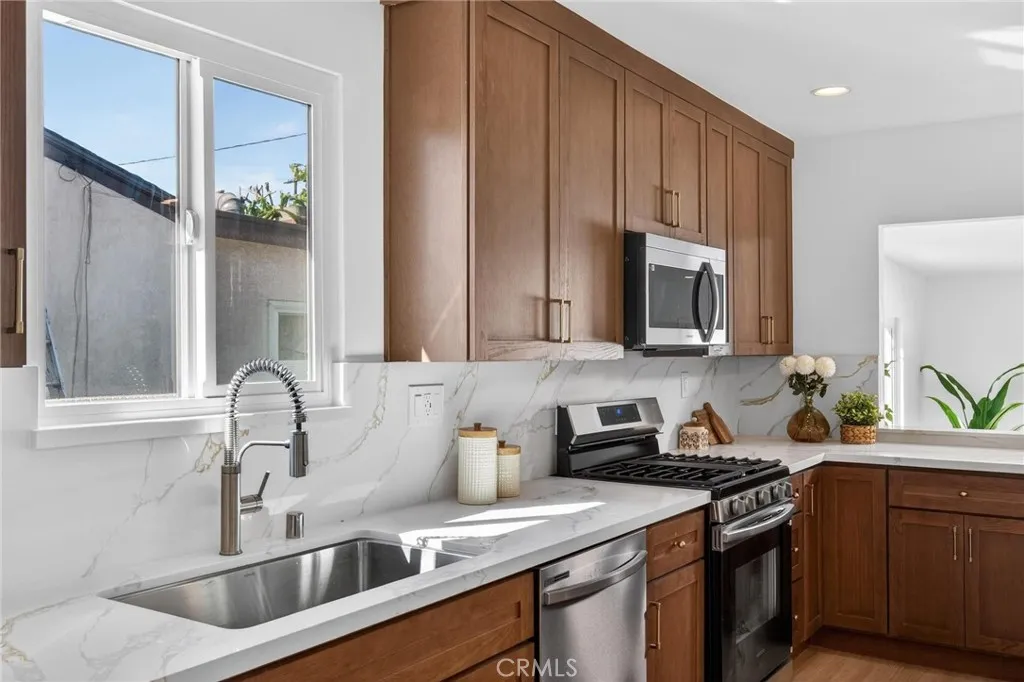 Fully remodeled and filled with natural light, 18901 Haas Ave offers a spacious and thoughtfully designed layout in a quiet Torrance neighborhood. This 4-bedroom, 2-bathroom home PLUS a dedicated office spans approximately 1,850 square feet on a flat 5,000+ square foot lot, delivering modern updates and flexible living spaces throughout. Inside, new wide plank flooring and energy-efficient windows create a bright and inviting atmosphere. The beautifully remodeled kitchen features rich wood cabinetry, light quartz countertops, and stainless steel appliances, opening to an oversized dining area that flows naturally into a step-down living roomideal for everyday living and entertaining. Just off the kitchen, a generous office provides the perfect space for working from home or creative pursuits, while a convenient stackable laundry area includes a washer and dryer. The homes layout offers excellent separation, with three bedrooms and a full bathroom located off the dining area, while the private primary suite sits just off the living room with views of the backyard. The oversized living room opens to a patio and a large, flat backyardoffering plenty of room for outdoor dining, play, or future possibilities. Additional improvements include a new roof, new windows, new HVAC, new electrical panel, and updated finishes throughout. Situated on a quiet horseshoe street with minimal through traffic, the home offers a peaceful setting while providing quick freeway access for commuters, along with close proximity to award-winning Torrance schools, shopping, dining, and less than five m