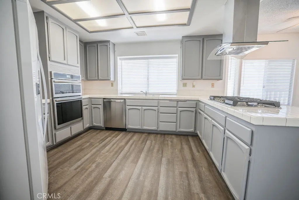 WELCOME HOME to this expansive 5-bedroom, 3-bathroom home situated on a generous half-acre lot in a quiet Moreno Valley neighborhood. From the moment you arrive, you'll notice the inviting curb appeal featuring low-maintenance landscaping, a large circular driveway, RV parking, and a spacious three-car garage. Step through the double-door entry and discover 3,321 square feet of living space enhanced by brand new luxury vinyl plank flooring throughout. Soaring ceilings and abundant natural light highlight the freshly painted interior and new window blinds, creating a bright and welcoming atmosphere.The updated kitchen offers new stainless steel appliances, including a dishwasher, oven, microwave, and gas range, making it ideal for everyday living and entertaining. The thoughtful floor plan includes one bedroom and a full bathroom on the main level, while upstairs you'll find three additional bedrooms along with a spacious primary suite. The primary bedroom features access to a private deck that stretches nearly the entire width of the home, providing a peaceful place to relax and take in the backyard views.Beneath the deck is approximately 678 square feet of covered outdoor living space, perfect for year-round entertaining. The backyard is truly a retreat with its own tennis and pickleball court, a one-mile walking track, planter boxes, fruit trees, and an oversized shed that could easily serve as a workshop, man cave, or she shed. Additional highlights include a prepaid solar lease through 2037, NO HOA, low taxes, and a prime location close to shopping, schools, and commute