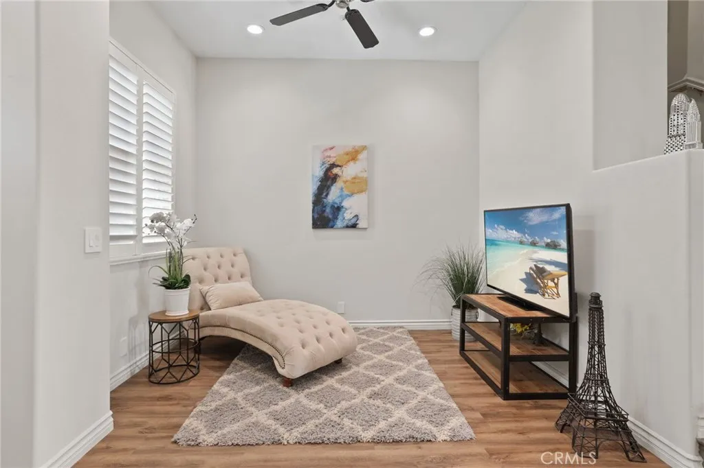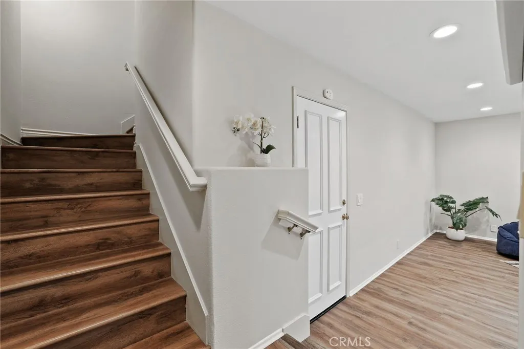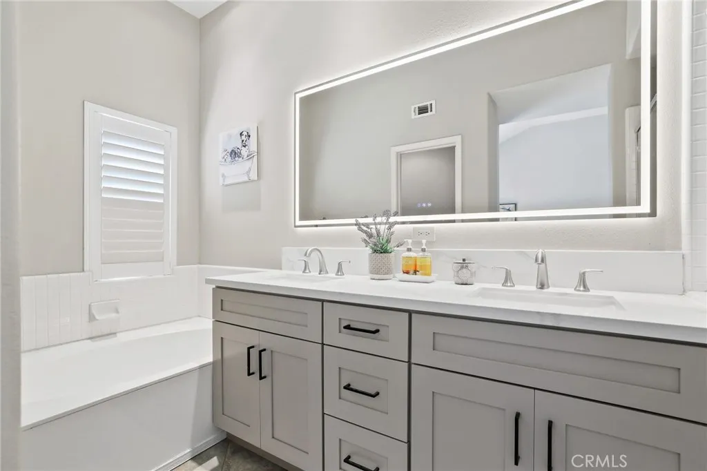 Beautifully remodeled condo within the Venturanza Del Verde community in the highly sought-after Tustin Ranch area. Contemporary and move-in ready! Living room features high ceiling with recessed lighting, double-sided gas fireplace, and sleek plantation shutters. Kitchen features stainless steel appliances, new shaker cabinets, quartz counter tops, and tiled backsplash. Upstairs includes a spacious primary suite with dual closets, two more bedrooms, and a full-sized hallway bathroom. The primary bathroom features a modern LED mirror, double-sink vanity, walk-in shower, soaking tub, and private water closet. The powder room is convenient and guest friendly. The bonus room may be used as a home office, playroom, or exercise room, etc. Additional improvements include new vinyl plank flooring, interior paint, lighting fixtures, and so much more! HOA fee covers water, trash, property insurance, exterior maintenance, and resort-style pool and spa amenities. Conveniently located near the Tustin Market Place, scenic golf course, parks, and top-rated award-winning schools.