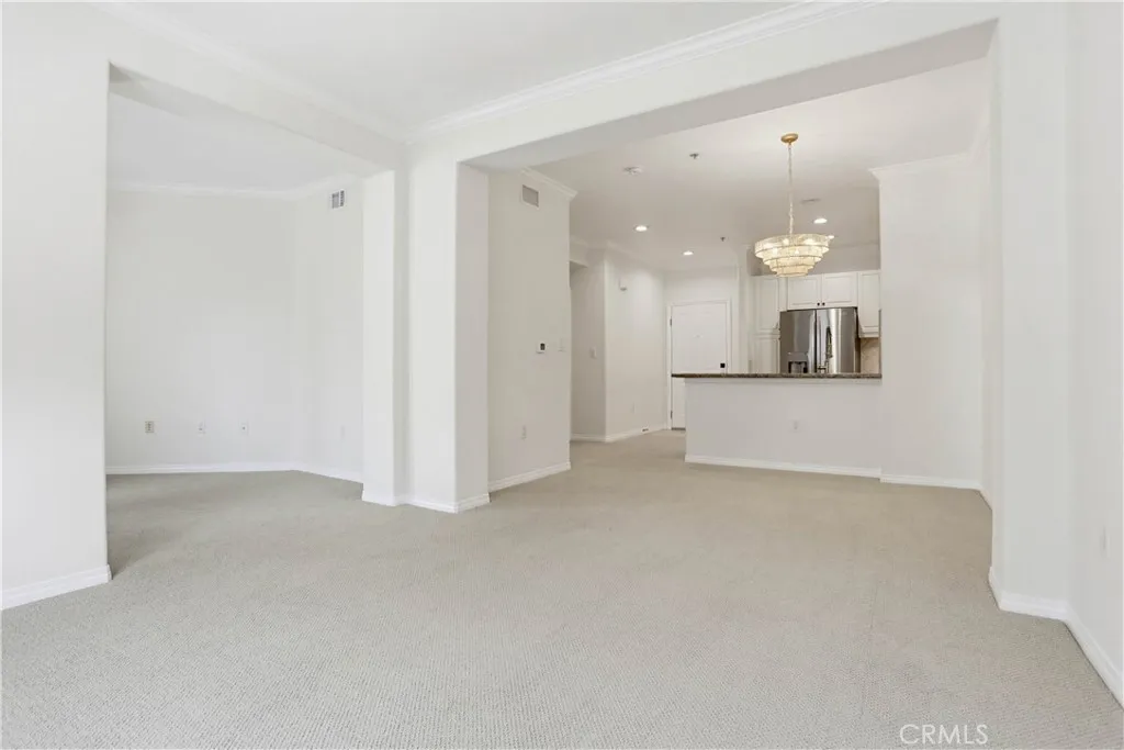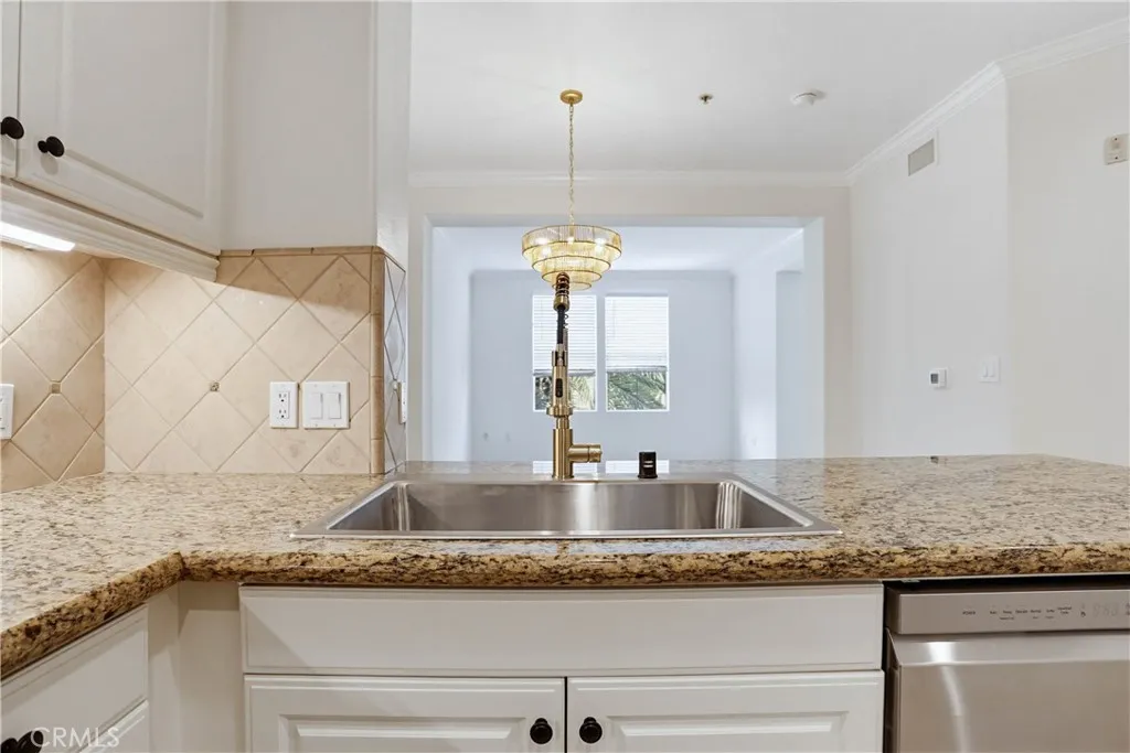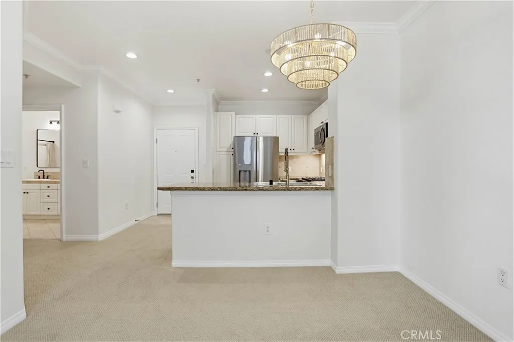Experience the best in sophisticated urban living in this Executive Unit located in highly desirable Watermarke Place, ideally located in the center of Irvines Triangle Corridor close to John Wayne Airport, within walking distance of shopping, dining, entertainment, recreation, and a short bike ride to UC Irvine. Timeless European architectural surroundings and lushly landscaped grounds, with 7 distinctly themed courtyards, nestled up to the tranquil San Joaquin Nature Preserve, this resort-like setting provides an ideal living environment. This beautifully updated unit is ideally located on a top 3rd floor with an interior location overlooking the resort like community pool. Step inside and soak in the light filled space with a neutral interior, new chandelier in the dining area, and an open concept floor plan, all setting the stage for a superb living space. The spacious living and dining area opens to a bonus space, perfect for an executive home office, with French doors opening to the private view balcony overlooking the pool, creating an ideal indoor outdoor living space for relaxing and entertaining. The gorgeous kitchen boasts Granite countertops, fully tiled backsplash, high-end Stainless-Steel appliances, including a prized new gas cooktop stove, new microwave, and new dishwasher, timeless white cabinetry, upgraded faucet and fixtures, and a prized breakfast bar all open to the dining and living areas. The bedroom suite is a spacious oasis with a large walk-in closet and windows overlooking the balcony and pool area. The large bathroom is blessed with dual vanities