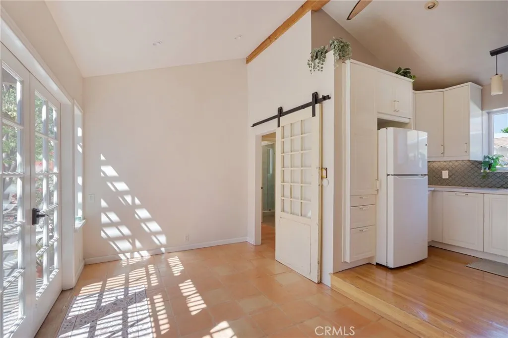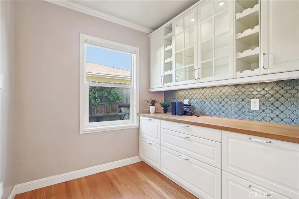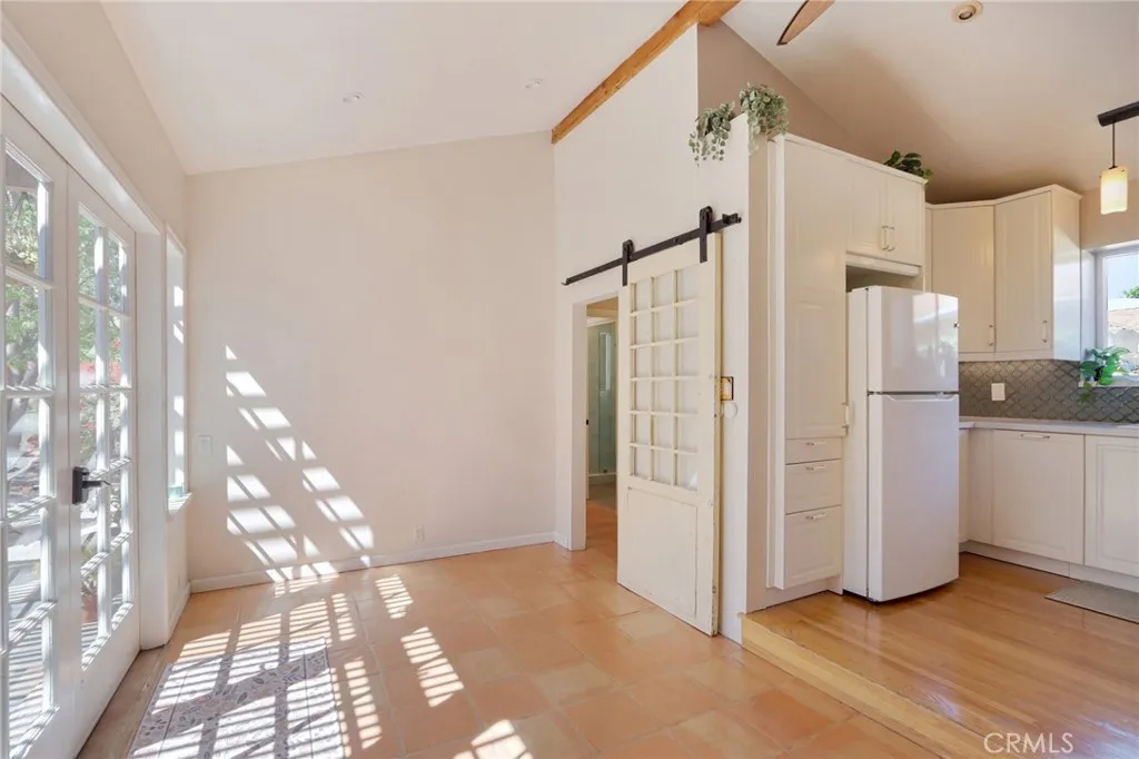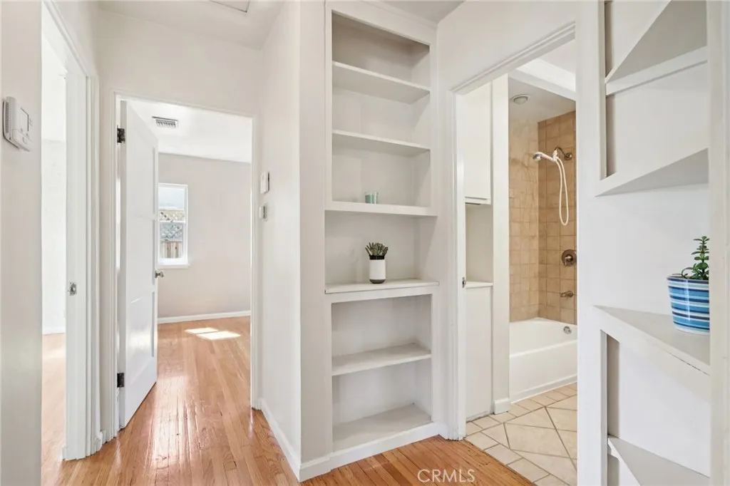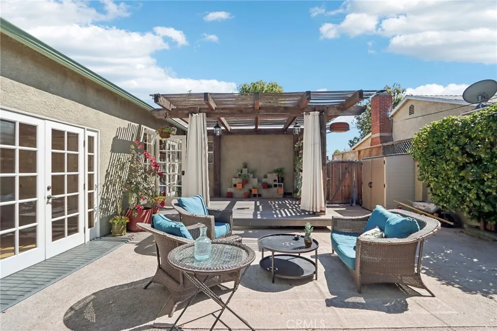 Welcome to this charming, well-maintained home on a cozy block with easy access to Magnolia Park, Toluca Lake and the Noho Arts District. Light and bright, with wood floors and Spanish-style tile floors, this home has a generously sized living room with views through the dining space into a sunroom. French doors lead to the raised patio/pergola which serves as outdoor dining & living space. Kitchen and pantry are remodeled with new cabinets, countertops and beautiful arabesque tile backsplash. Hallway with built-in bookshelves leads to two bedrooms and a full bathroom. Off the sunroom, walk through the laundry room with stacked washer & dryer to the expansive primary bedroom with high ceiling, ensuite bathroom, and separate heating/cooling system. Two large closets - one walk-in - provide plentiful storage. French doors lead to the backyard hideaway. Shaded by a mature tree, the private, fully fenced back yard is low-maintenance and low-water-use. A second patio behind the house is fully covered and wired for your outdoor television or stereo system. Walk to the popular Chandler bike & walking path and local favorites Iliad Bookshop, Cahuenga General Store, and Lawless Brewery.