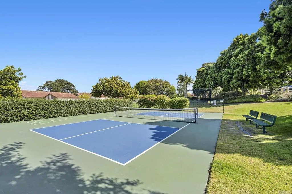 Best location in the development! Step into panoramic gorgeous Encinitas mountain views in this highly desirable quiet location in High Country Villas. Directly across the street from the beautiful 9 hole golf course, pickleball, pool and clubhouse. Upper unit with 2 bedrooms 1 bath home with no neighbors behind you. All new electrical panel just completed. Flooring, bathroom cabinet, lighting and kitchen counter tops all done. Popcorn ceilings removed. This single level town home is in a 55+ community that offers golf, swimming pool and spa, hiking/biking trails, clubhouse activities such as bocce ball, aqua aerobics, exercise classes, clubs and much more lifestyle and friendship. Less than 4 miles to moonlight beach and close to award winning shopping, dining, and medical. Enjoy unbelievable sunsets from the front of the property and follow the colors in the sky over the mountains from your private balcony in the back. Views from every window including golf course views, mountain views and hot air balloon views. Morning sunrises over the mountains are spectacular! Priced to sell so come see asap! Excellent rental with great possiblilites.