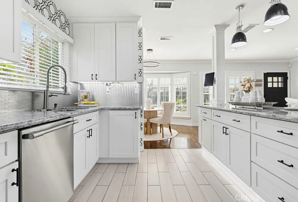 ASSUMABLE VA LOAN! Welcome to this beautifully maintained, turnkey single-family home in the highly sought-after Lakewood Park neighborhood, known for its tree-lined streets and strong sense of community. Built in 1950 and situated on a 5,478 sq ft lot, this charming residence seamlessly blends classic character with thoughtful modern upgrades. A welcoming brick walkway and inviting curb appeal lead you into a bright, open-concept floor plan designed for comfortable everyday living and effortless entertaining. The spacious living room is filled with natural light and features a raised hearth brick fireplace, crown molding, recessed lighting, and a cozy window seat with plantation shutters. The updated kitchen has been thoughtfully modernized and opens directly to the living area, creating a seamless flow. It showcases a large granite island, ample cabinetry, granite countertops, a stylish tile backsplash, and stainless steel appliancesperfect for both hosting and daily use. Adjacent to the kitchen is a dedicated laundry room and convenient guest bath. A versatile rear bonus room with open beam ceilings and expansive windows offers the perfect space for a family room, game room, or indoor-outdoor entertaining area, with direct access to multiple patio spaces. Step outside to your private backyard retreat featuring a completely refinished pool, new pool pump, and updated return plumbingproviding both peace of mind and the ideal setting for relaxing or entertaining. The yard also includes a built-in BBQ area and two distinct patio spaces, with additional room to customize or e