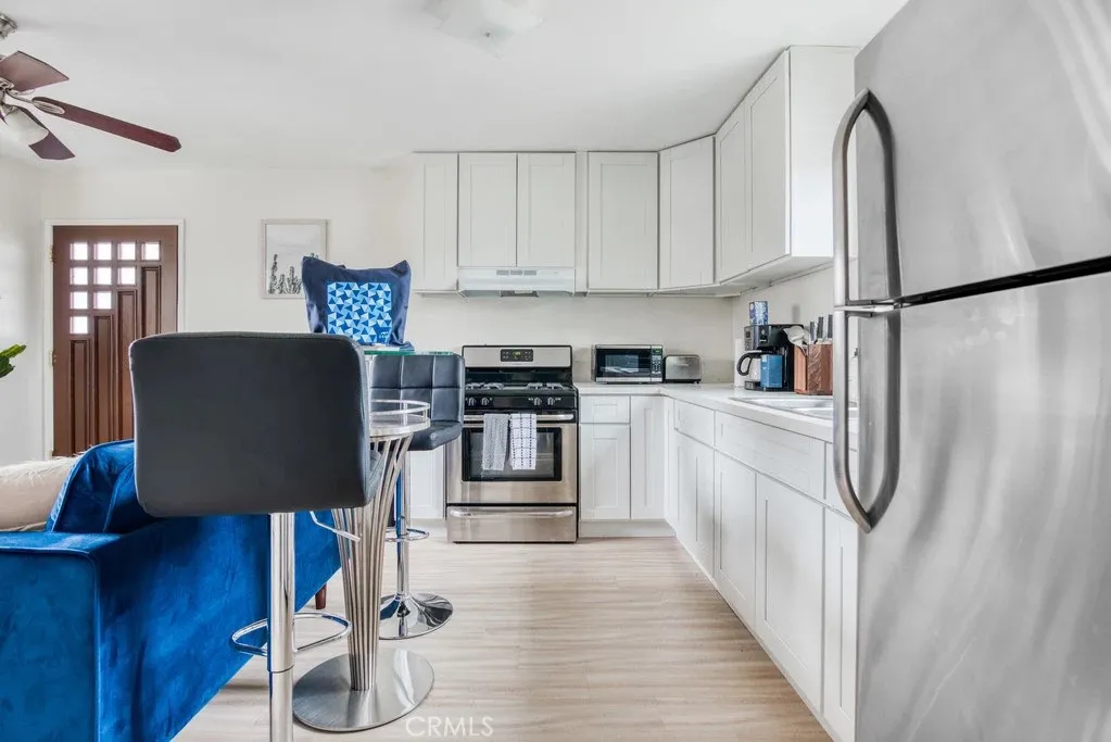 Welcome to 1572 S Ridgeley Drive, a beautifully maintained property offering the charm of a single-family home with the added benefit of an income-producing guest house, ideally located in the heart of Los Angeles. Set on a generous 5,400 sq ft lot, the property is framed by thoughtfully curated landscaping, mature fruit trees, and inviting outdoor spaces that enhance its warm curb appeal. The main residence features 3 bedrooms and 2 bathrooms across approximately 1,400 sq ft, blending classic architectural character with thoughtful updates. The bright living room showcases arched dual glazed windows that reflect the homes timeless Spanish style, while a sunny breakfast nook with additional arched windows creates the perfect place to start the day. The spacious primary suite offers a large bedroom with separate driveway access, creating excellent flexibility for guests, extended family, a home office, or potential rental use. The main house also enjoys a charming front yard with a brick patio, an ideal setting for morning coffee or relaxing evenings outdoors. A two-car garage and expansive driveway provide generous off-street parking. Above the separate garage sits the guest house (ADU), offering approximately 476 sq ft with 1 bedroom and 1 bathroom. The ADU includes its own private yard, one-car garage, and separately metered gas and electricity, providing excellent independence from the main home. Currently leased for $1,903.21 per month, it delivers immediate income while maintaining strong long-term rental potential. Convenient permit street parking helps ensure reliabl