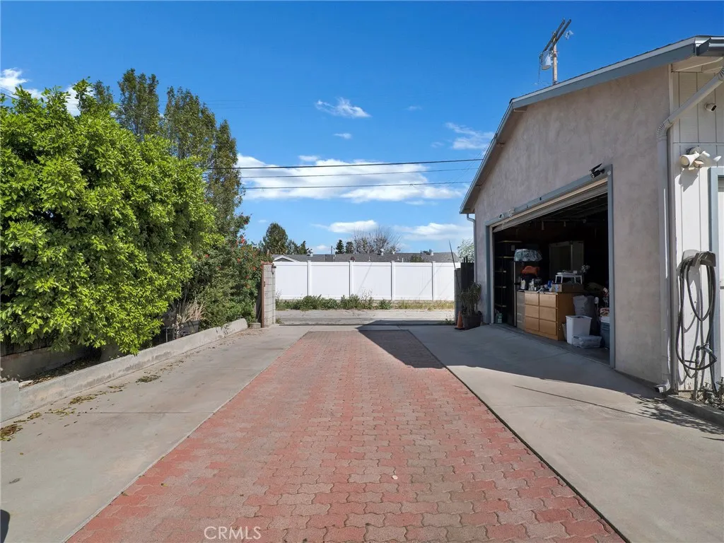 Charming Chatsworth Home with a giant, detached garage/workshop! 3 spacious bedrooms with a 4th bedroom possible. The large kitchen is at the center of this home, featuring plenty of counter and cabinet space, and opening to both the living and dining rooms. Spacious living room with a slider leading to the back yard. The dining room features a vaulted ceiling and a cozy brick, wood burning fireplace. The bonus room, adjacent to the dining room features a pantry, laundry closet, storage closet, recessed lighting, and a slider leading the back yard. This is currently being used as a 4th bedroom - lots of possibilities with this space. The 3 spacious bedrooms include the primary suite, featuring a bay window with under seat storage and a full en suite bathroom with a NEW shower & tub. Parquet wood floors in the living room & bedrooms. Smooth ceilings and dual pane windows throughout. The back yard features a huge, detached garage/workshop with room for up to 4 cars - tons of potential for this space as a garage, workshop, studio, rec room, or ADU, among other possible uses! Automatic gated alley access with a driveway long enough to accommodate an RV or trailer. Two storage sheds and storage racks behind the garage. Patio areas off of the living room and bonus room. Mature fruit trees. Drought resistant landscaping in the front yard with a newer wrought iron fence. Assumable SunRun solar installed in 2022. Charming with tons of potential!