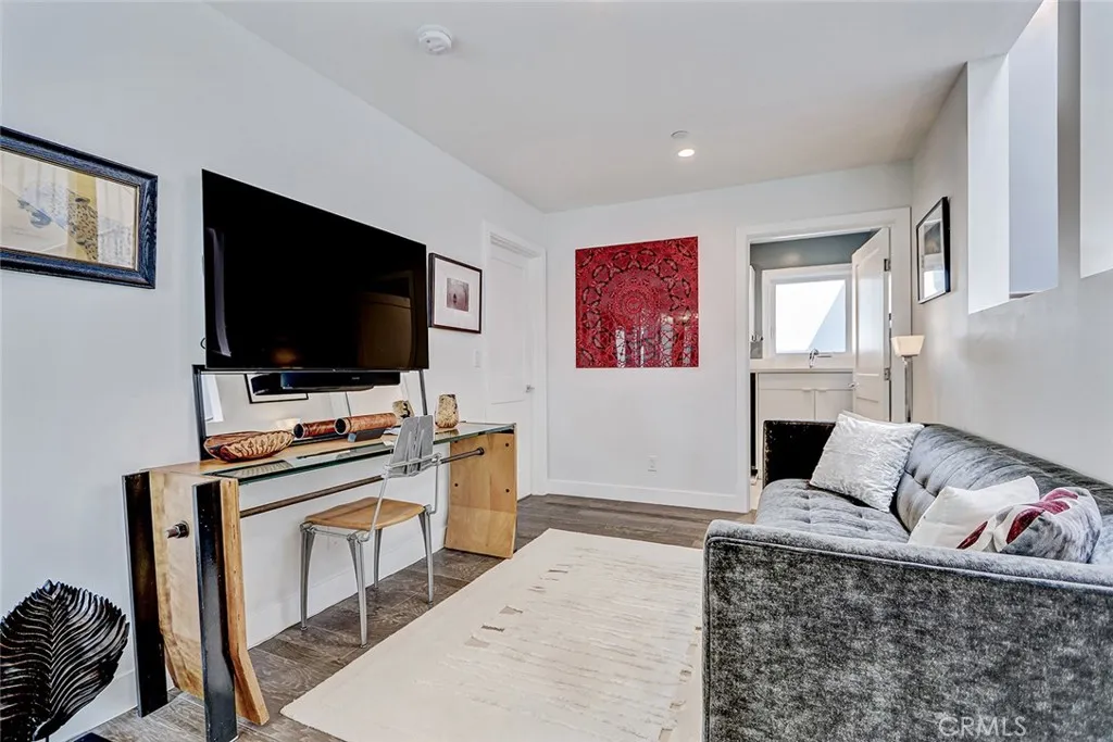 Set within a highly desired coastal setting in Hermosa Beach, this fully customized rear townhome delivers refined beach living with space, style, and sweeping ocean views from the interior. Thoughtfully designed to live like a single-family home, the property offers 4 bedrooms, 3.5 bathrooms, and approximately 3,200 square feet of well-planned interiors that balance comfort with architectural sophistication. Sunlight pours through oversized windows, highlighting wide-plank hardwood floors and curated designer finishes that create a calm, inviting atmosphere throughout. The main living level is positioned to capture ocean breezes and elevated views, seamlessly connecting to multiple outdoor decksideal for open-air dining, relaxing afternoons, and evening sunsets. At the center of the home, the chefs kitchen is both striking and functional, featuring premium Viking appliances, quartz countertops, and intelligently integrated storage that supports both everyday living and effortless entertaining. The flexible floor plan places major living spaces upstairs for maximum light and outlooks, with mid-level bedrooms complemented by a media lounge and newly updated flooring. A private primary suite is enhanced by upgraded sound insulation, offering a serene retreat. The lower level includes a full guest suite and additional living area, providing versatility for work-from-home use, visitors, or extended stays. Notable upgrades include custom closets and custom wall finishes, a whole house filtration system, a function built-in cabinets in the two-car garage. Architectural quality, i
