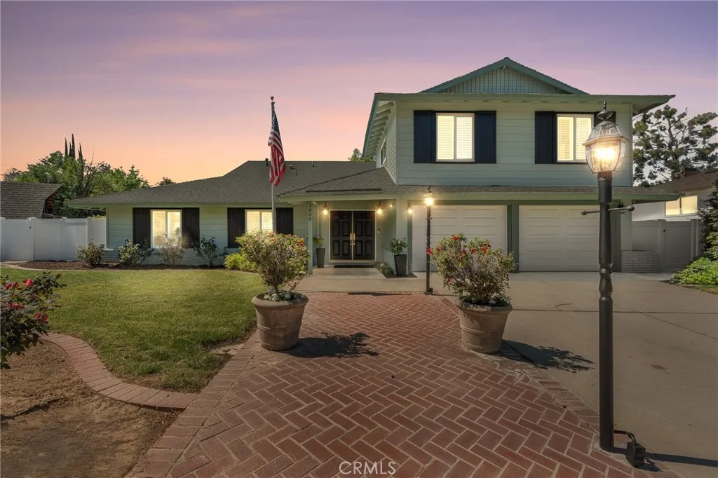 HOME AT LAST! Step inside and feel the loveliness. This welcoming property is sunny and bright with plenty of cheery spaces for the whole crew. Gracious entertaining will be a breeze with the generously sized living room and gathering spaces. The light and airy kitchen has plenty of counter space to prep and serve on. A clever, wheeled island can be moved out of the kitchen for added buffet space. Inviting dining options at this updated home are located both inside and outside. Large exterior concrete decking and covered patios provide ample outdoor entertaining areas. The custom brickwork, garden fountain and plantings make for a picturesque retreat. Beautiful sliding glass doors provide a seamless flow from indoors to outdoors. Offering plenty of bedrooms and baths, this home boasts a large, main floor primary suite with an enormous walk-in closet. The upstairs bonus room adds that fabulous flex space that is so desireable. Imagine it as guest space, game space,or studio space. Simply put, this property offers comfortable living in an excellent location that is close to highly acclaimed schools, with easy freeway access, and near to the golf course. See it today!