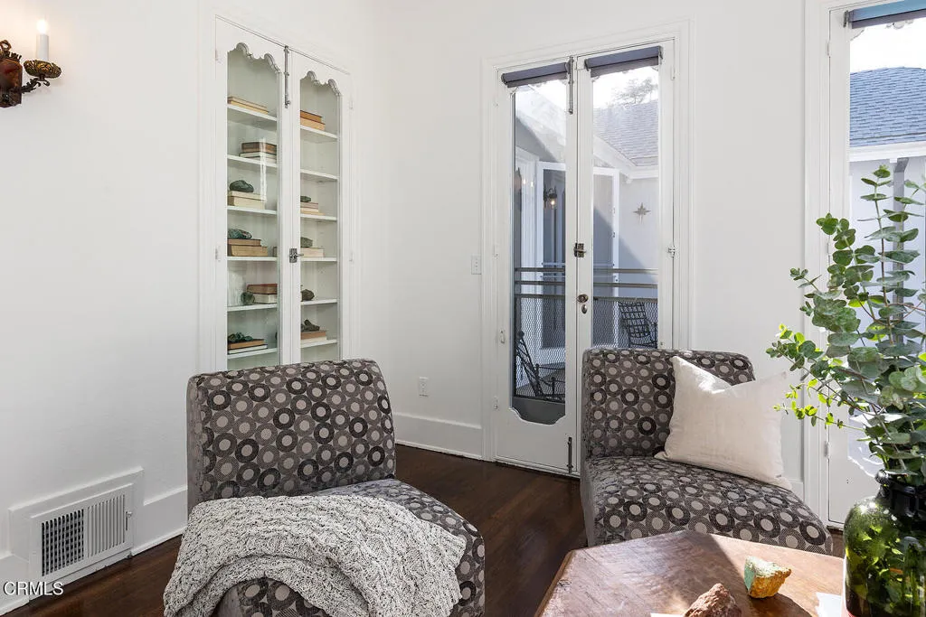 This 1921 Italian Renaissance Revival Villa epitomizes historic Altadena. Built by designer Pasquale de Rosa, friend of the legendary Zane Grey, this exquisite compound on over half an acre is a work of art. Sited to enjoy spectacular mountain views, the property includes a main residence, guest quarters, barn studio, and beautiful gardens. There is beauty to be found everywhere here, in the natural surroundings to the classical symmetry and curves. Featuring an H-shaped plan, the home's distinctive roofline is defined by its rounded gables, sculptural carved rafter tails, and starburst oculi at the east and west of the facade. Three french doors at the entry elevation boast views through the central living room, and open to a harmonious floor plan. Connecting public and private spaces, while enjoying access to patios and gardens to the north and south, the room is anchored by a decorative fireplace, rich carved mahogany woodwork, and original candelabra sconces. An elegant formal dining room features coved ceilings and french doors, flowing naturally into an updated eat-in kitchen, while a quiet sitting room with its own decorative fireplace enjoys views and direct outdoor access. Throughout the property, details are exquisite: custom plaster moulding, elaborate trim and baseboards, and carved wood frames on casement windows and doors speak to the vision and craft of the original builder. The 2,875 SF main house offers four bedrooms, including two generous primary bedrooms, one with a full ensuite bath, the other with french doors opening to the backyard gardens. The garde