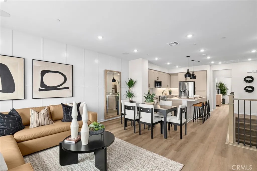 modern, two-story new construction townhomes ideally situated in the heart of Orange County. Enjoy convenient access to excellent schools, nearby entertainment, shopping, and dining, all within a quiet neighborhood with ample parking. Plan 1 features a thoughtfully designed layout with a first-floor bedroom and full bath, ideal for guests or multi-generational living. The second floor offers an open-concept main living area, including the kitchen, dining room, and primary suite. This home is beautifully appointed with white shaker cabinetry, stainless steel appliances, a smart home system, and an electric vehicle charging outlet in the garage. Home has solar panels with option to purchase or lease.