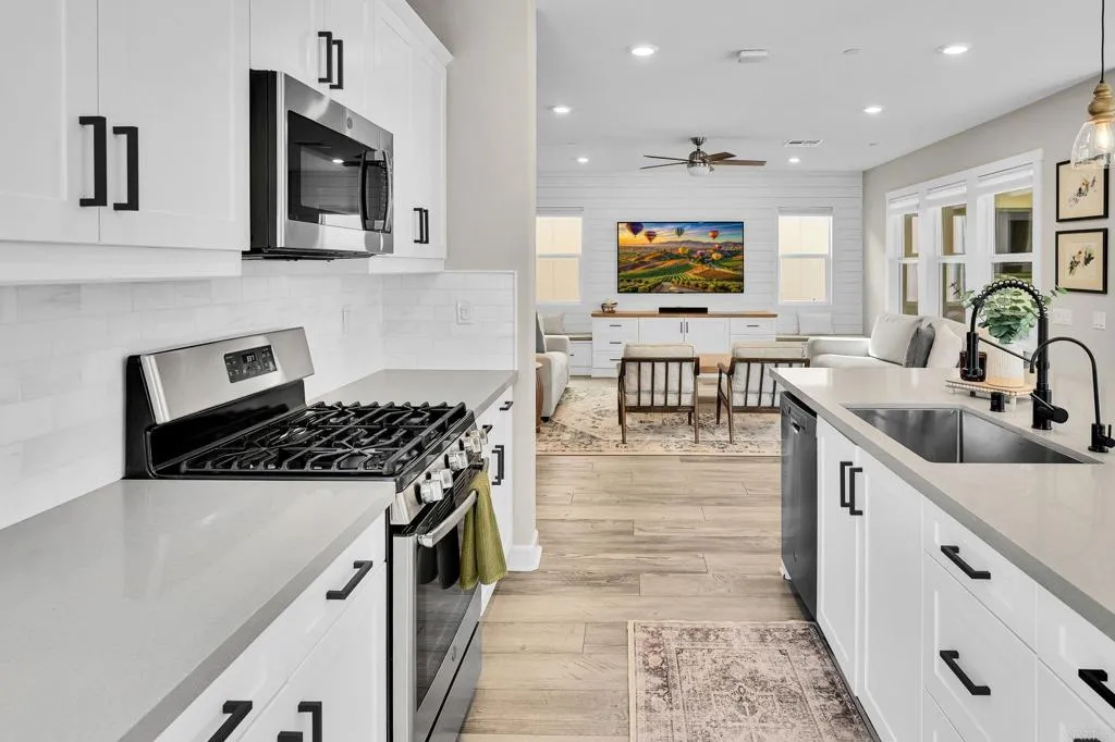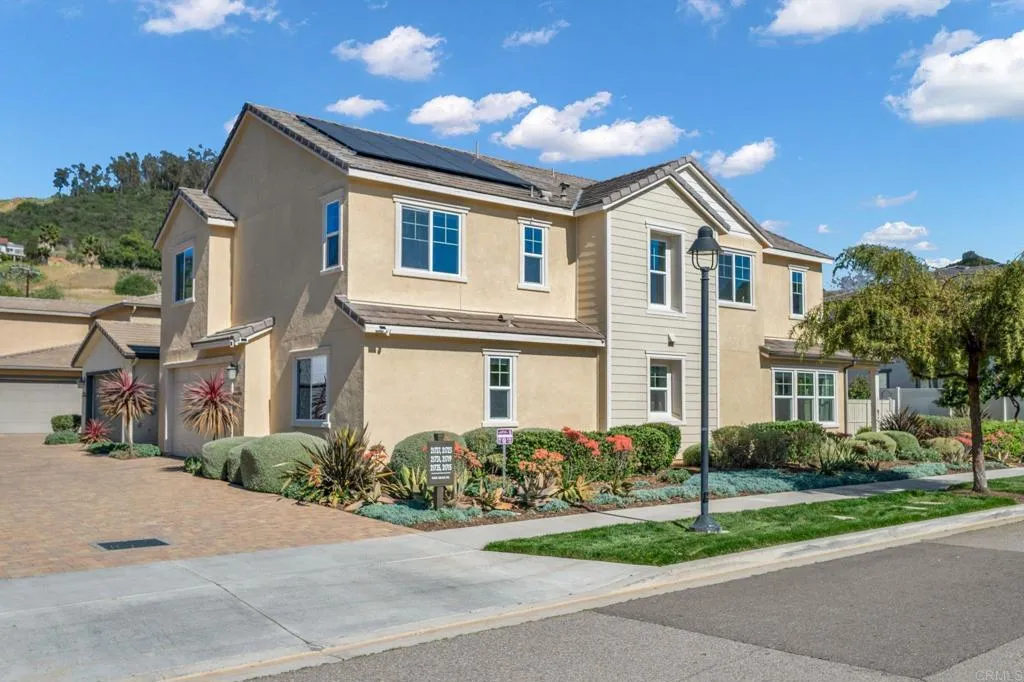 Welcome to this beautifully upgraded home in the highly desirable community of Harmony Grove Village in Escondido. This single-family detached home with no shared walls has been thoughtfully enhanced with over $50,000 in upgrades since purchase, this home blends modern design, functionality, and comfort throughout. Step inside to find stunning large plank luxury vinyl flooring, custom built-ins in the living room, and upgraded window casings that add a refined touch. The open-concept layout flows into a stylish kitchen featuring a custom backsplash, upgraded sink, and all appliances includedperfect for both everyday living and entertaining. Upstairs, a spacious loft offers flexibility for a home office, playroom, or media space, complete with its own custom backsplash detail. Additional interior highlights include a built-in mudroom mushroom area, soft water system, and reverse osmosis drinking water for added convenience and quality. The backyard is designed for relaxation and entertaining, featuring added landscaping with mulch, decorative rock, lighting, and an outdoor TV that conveys with the propertycreating the perfect space to unwind. Energy efficiency is a standout with 10 solar panels on a PPA at approximately $100/month, along with an EV charger in the garage. Garage storage racks are also included for added functionality. Additional features include a Ring alarm system, all curtains conveying, and thoughtfully selected upgrades throughout that make this home truly move-in ready. Located in a vibrant community with parks and trails. This is a rare opportunity to o