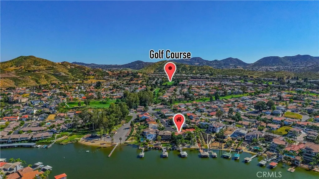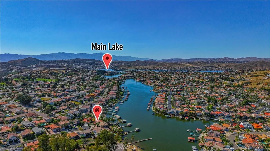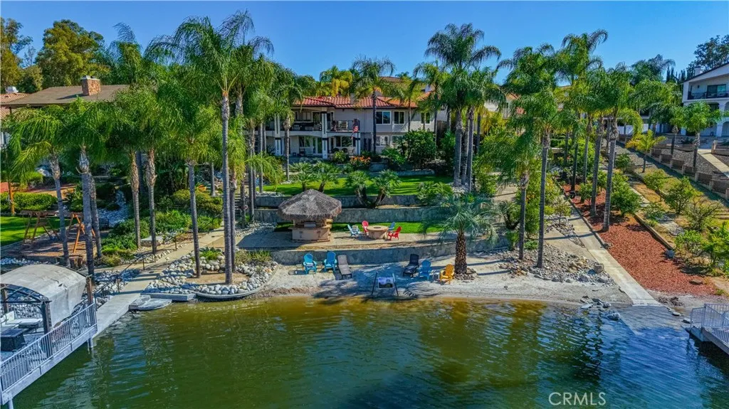 Experience true waterfront living at its finest. Tucked away at the end of a quiet cul-de-sac, this extraordinary property sits on an oversized, pie-shaped lot with approximately 150 feet of private water frontage and your very own sandy beach.The grounds feel like a private lakeside resortexpansive grassy areas, mature trees, stone-lined walking paths, a private trek deck pier with a covered pergola, and a covered cement dock with a lift create the ultimate outdoor retreat. Entertain effortlessly with a covered BBQ palapa with a fridge, fire pit, two large covered patios, and a tranquil rock stream and serenity plunge that add to the serene ambiance.Step through the double-door entry into a stunning great room and kitchen designed to capture breathtaking water and mountain views through expansive windows and sliding glass doors. The seamless indoor-outdoor flow makes everyday living feel like a vacation.The main level features a private primary suite with a beautifully appointed bathroom, great room with fireplace, dining room and large kitchen with an island, oversized laundry with plenty of storage and direct garage access for convenience. This home features an elevator that leads to the downstairs golf cart garage and interior of the home.Downstairs offers a spacious secondary living area/bonus room with a built-in bar, complete with a wine fridge, sink, microwave, fireplace and TV. There are also three additional bedrooms and two bathroomsperfect for guests or multi-generational living.In addition to the attached two-car garage, there is an electric side gate with acce