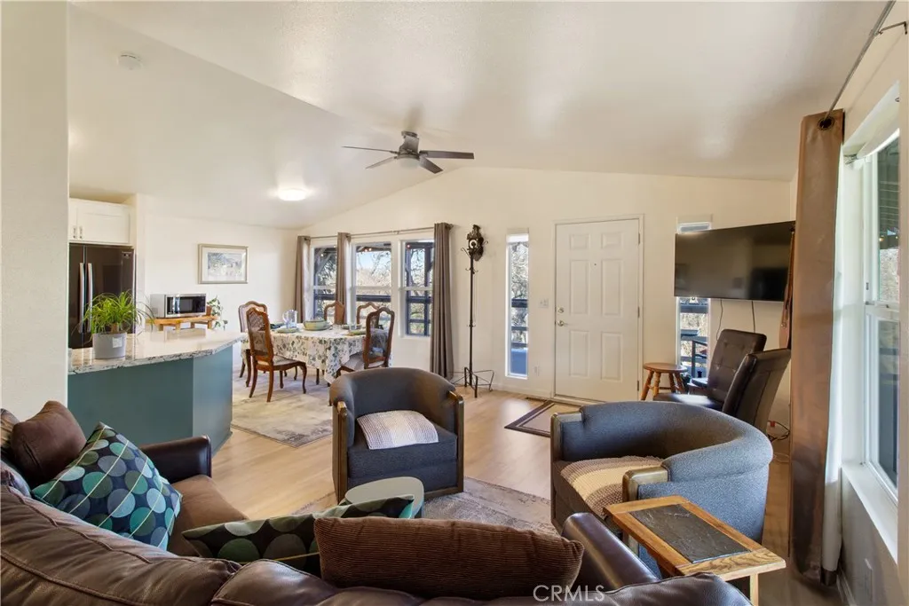 *** 2 Separate Units! *** Tucked along the river in a peaceful, tree-lined setting, this charming 2-story Craftsman-style property sits on an expansive 1.60 acres riverfront lot. Offering a rare blend of space, privacy, and natural beauty, this unique home features two separate living units with a total of 4 bedrooms and 3 bathrooms - perfect for multi-generational living, rental income potential, or extended family accommodations. The upstairs unit includes three well-appointed bedrooms and two full bathrooms. The main bedroom offers a spacious king-sized bed area, warm wood flooring, and generous closet space. Two additional bedrooms feature comfortable layouts, wood floors, and abundant natural light. The inviting living room flows seamlessly into a formal dining area, creating an ideal space for gatherings and everyday living. The kitchen provides ample cabinetry and functional workspace, while a dedicated laundry room with updated cabinetry and shelving adds convenience. Bathrooms are finished with tile surrounds, wide vanities, bathtubs, and modern fixtures for a clean, timeless look. The downstairs unit offers a private one-bedroom, one-bathroom layout with its own living area - ideal for guests or rental flexibility. The updated kitchen showcases stainless steel appliances, shaker cabinetry, butcher block countertops, and a center island with bar seating. Exposed beams add warmth and character. The bedroom features a cozy bunk bed setup and built-in shelving. The remodeled bathroom impresses with full tile walls and floors, a spacious walk-in shower with bench seati