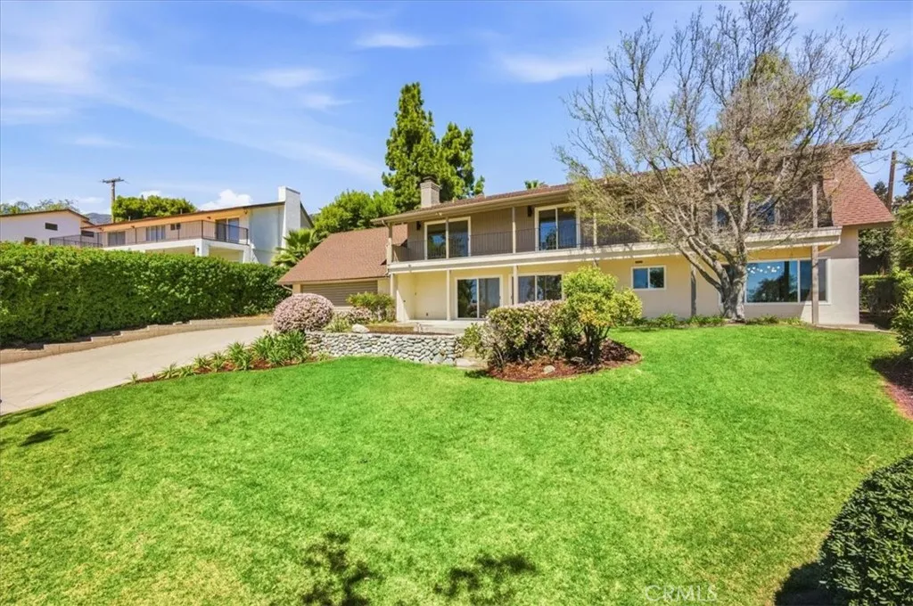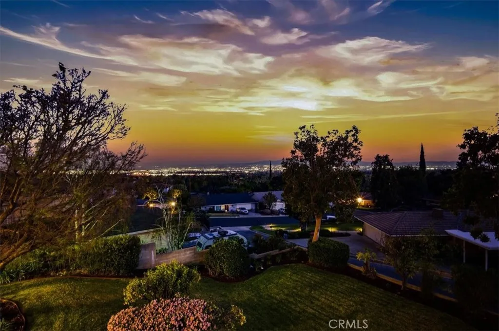 Welcome to this stunning 5-bedroom, 3-bathroom mid-century modern jewel located in the highly desirable community of San Antonio Heights, showcasing breathtaking city light views from every south-facing window. This home perfectly blends timeless architecture with modern updates. From the moment you arrive, youll be captivated by the exceptional curb appeal, featuring lush rolling lawns, majestic trees, and mature landscaping. Step inside to a dramatic two-story wood-clad curved entry with an elegant spiral staircase that sets the tone for the homes exceptional character. To the left of the entry, youll find the sophisticated formal living room complete with wall to wall slumpstone fireplace and walnut mantle, immediately adjacent to the formal dining room with walnut paneling and grand view of the valley belowideal for entertaining. The family room features a striking rock fireplace and flows seamlessly into the updated kitchen, creating a bright, open-concept layout. The kitchen boasts quartz countertops, stainless steel appliances, and timeless walnut cabinetry. Two expansive sliding glass doors flood the space with natural light and provide stunning views of the backyard and city lights beyond. Additional highlights on the main level include a conveniently located bedroom/office and bathroom for guests and a separate indoor laundry room with laundry chute from upstairs for ease and functionality. Throughout the home, youll appreciate the blend of natural wood and stone elements, including terrazzo flooring, walnut paneling, luxury vinyl flooring, and textured designer c