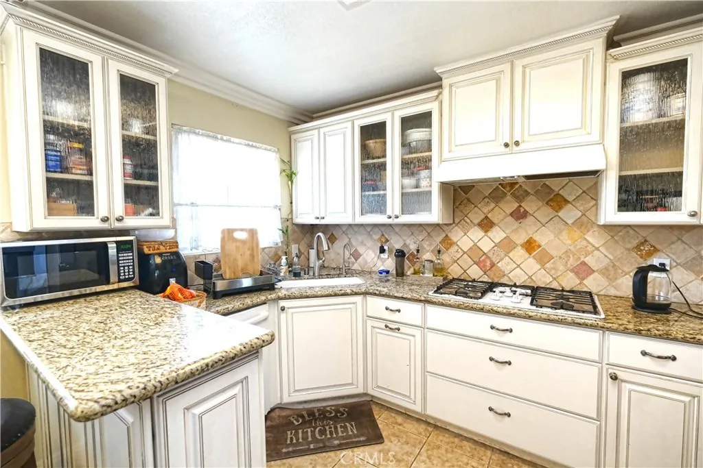 Spacious single story house on 10,790 Sq.Ft. Lot with RV Access! Located in the Las Palmas/Hermosa Neighborhood with two Master Suites! Spacious floor plan. Upgraded kitchen with custom cabinets, granite countertops, and Stainless Steel oven. The living room has a travertine fireplace and recessed lighting and opens to the dining area. The upgraded floors are a beautiful tile. The bedrooms have a high-grade carpet. The Master bedroom is located on the other side of the house from the four bedrooms. This Master bedroom has high vaulted ceiling with lots of windows to bring in plenty of light and is very spacious and has a large bathroom with custom shower with natural looking stone tile and large dressing area with huge walk in closet. Main bathroom has very nice cabinets and beautiful tumbled marble tile in the shower. The Jack & Jill bathroom connects two bedrooms, perfect for childrens bedrooms, play room or office or study. The Master bedroom is a versatile living space that has large sliding doors opening to the park-like backyard; spacious with high open beam ceiling, lots of windows, Separate A/C. Indoor laundry room. Central A/C. This house has double pane windows, solid core doors, baseboards and crown molding! The backyard is huge with lots of lush trees and an extended covered patio for entertaining or relaxing. The backyard also has a beautiful gazebo and a large storage shed. Conveniently located close to Fullerton Golf Course, Laguna Lake Park, restaurants, shopping, and entertainment.