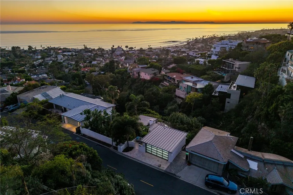 Take in sweeping panoramic views of Catalina and San Clemente Islands, with the iconic Hotel Laguna in the foreground and the soothing rhythm of waves below. Situated in the lower Mystic Hills enclave of Laguna Beach just moments from the village, this fully remodeled ocean-view residence captures breathtaking sunsets and shimmering city-light views. Designed to maximize its extraordinary setting, the open-concept floor plan welcomes you through a tranquil garden terrace entry and opens to dramatic ocean views. The living room is defined by floor-to-ceiling windows framing expansive ocean vistas, a sleek gas fireplace, and seamless flow to both the kitchen and an ocean-facing terracecreating effortless indoor-outdoor living. The main-level primary suite offers a walk-in closet and a spa-inspired bath, highlighted by a private outdoor rain-head shower and tranquil water feature. A secondary bedroom on the main level opens to an expansive deck with sweeping coastline views. The lower level reveals a spacious family room flanked by two additional bedrooms and two upgraded bathrooms, all enjoying ocean views and direct access to a covered terrace and open sundeck. A detached art studio provides flexible space for creative pursuits or a private office. The grounds form a curated coastal sanctuary, showcasing rare specimen palms, raised garden beds, and mature fruit trees. Extensive upgrades include new HVAC, updated electrical panel with 220V EV outlet, updated kitchen wiring, new sump pump, 50-year roof, a newly remodeled downstairs bath, and added garage storage. A rare, move-