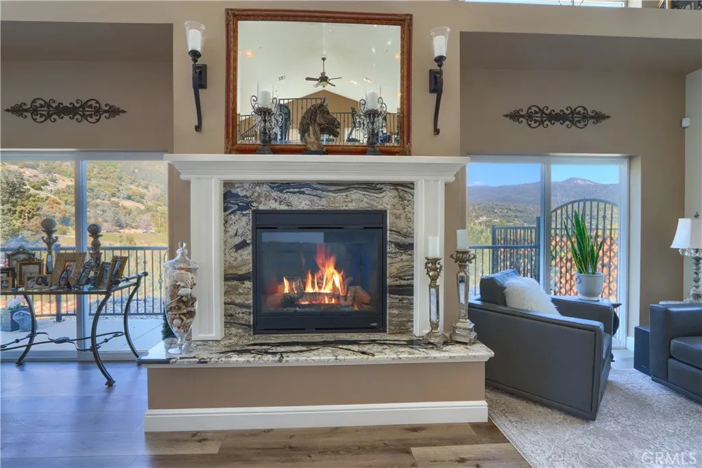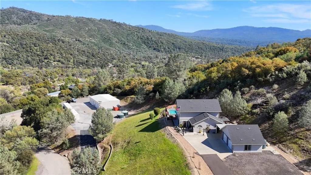 The iconic House on the Hill is now for sale! Take in breathtaking Sierra Mountain views from this immaculate custom home built by Custom Plus Construction. Offering 3 bedrooms, 2 bathrooms, and approximately 2,435 sq. ft. (buyer to verify), the home features an open loft with a dramatic 21' vaulted ceiling and wood flooring in all bedrooms. The gourmet kitchen is a standout with double ovens, wine refrigerator, soft-close cabinetry, electric cooktop, and striking granite countertops imported from Africa. The recently remodeled primary bath showcases brushed gold fixtures, a multi-head shower with seamless glass, and LED front- and backlit vanity mirrors. Step outside to your private hilltop retreat, complete with a custom built-in pool featuring three sheer descent waterfalls, a spacious covered and fenced patio, plus a fully equipped outdoor kitchen with built in grill, refrigerator, sink, and ample seating areas, perfect for entertaining or relaxing. Additional highlights include a newly built detached 2-car garage with overhead storage, plus an impressive 2,400 sq. ft. shop on its own .75-acre portion of the approx 2.41 acre property. The shop offers excellent visibility and versatility with 2 offices, a bathroom with shower, loft, built-ins, three bays accommodating up to 6 vehicles, laundry hookups, and RV hookups. Zoned 50% Residential and 50% Commercial (with a Conditional Use Permit), this unique property offers endless possibilities. Ideally located with easy access to Yosemite National Park and nearby Bass Lake. Come experience this exceptional property, you may
