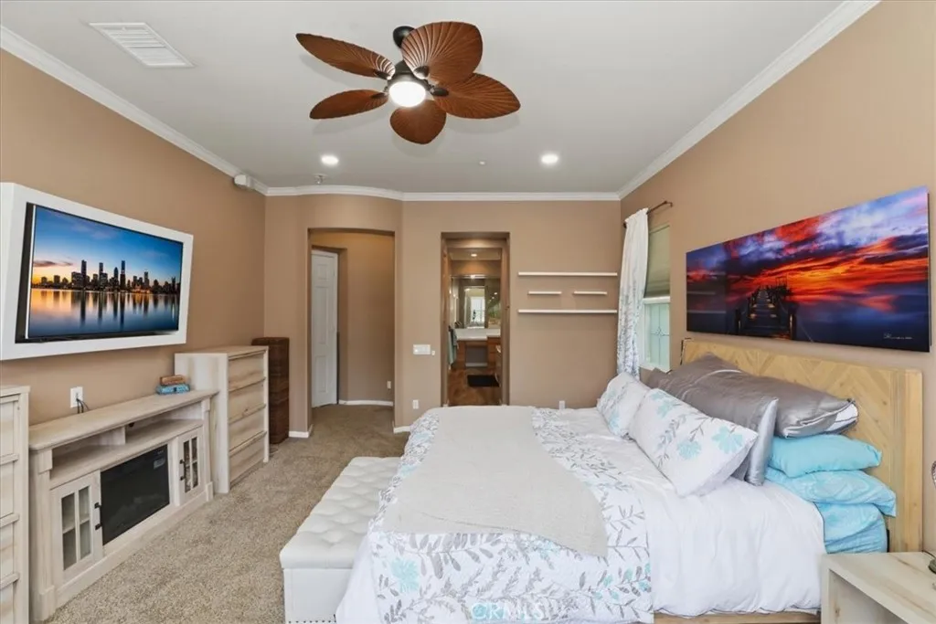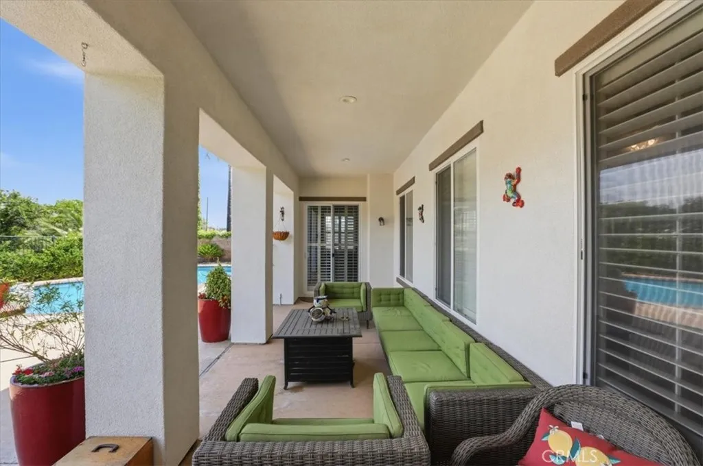 Riverside's Gate Guarded Rancho Valencia set in the orange groves this home is a single-story with an inviting pool/spa, upgraded with style. Perfectly situated on an oversized -acre, this home greets you with stunning curb appeal and a spacious rectangular layout that maximizes views of the orange groves. Step inside to a bright, open floor plan with shutters thru out, desiner carpet and tiles, with custom paint colors and more. Offering 4 bedrooms, 3 bathrooms, and a large private workout room/office/ot whatever with its own entrance and HVAC. The chefs kitchen is fully remodeled with cabinetry, granite counter tops, newer stainless steel appliances, a farmhouse sink, and more. Exterior has a sparkling backyard pool and spa, storage shed with its own electricity, grass area, and a leased solar system with 36 panels. The primary suite, thoughtfully positioned for privacy, a spa-inspired ensuite with a walk-in shower, soaking tub and more. Two additional bedrooms share a Jack-and-Jill bathroom. In the hallway just before the bedrooms there is homework/office area. Seller have installed many upgardes to this home such as HVAC system, mini fruit orchard, all backing to a peaceful, active orange grove for privacy. Theres also ample RV parking. and much more.