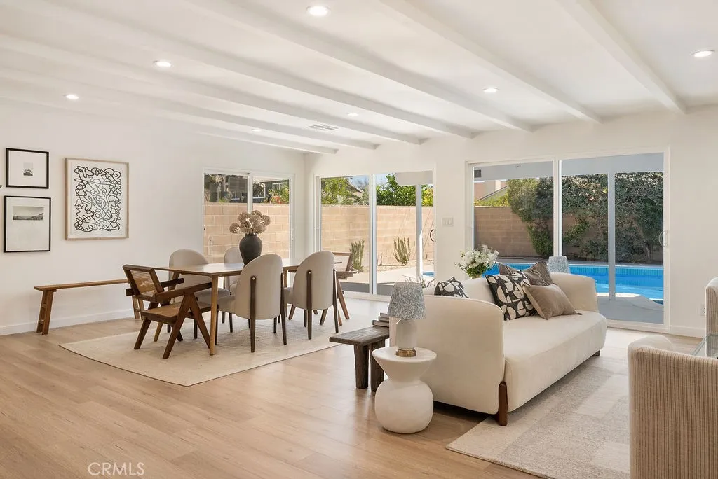 Stunning and fully renovated, this beautifully reimagined home blends modern elegance with thoughtful functionality. Offering 4 bedrooms, 3 bathrooms, and 2,366 sq. ft. of living space, every detail has been carefully curated with high-quality finishes throughout. Step inside to a bright, open-concept layout featuring brand-new windows, sliding glass doors, and an upgraded front entry. The home showcases new flooring throughout, enhanced baseboards and trim, stylish hardware, recessed lighting, and quality fixtures that elevate every space. At the heart of the home is an entertainer's kitchen, complete with white oak colored cabinetry, a striking waterfall-edge quartz island, and stainless-steel range and dishwasherperfect for both everyday living and entertaining. All three bathrooms have been fully remodeled with modern tilework, quality fixtures, custom glass enclosures, and beautifully designed vanities, creating a luxurious, spa-like atmosphere. Enjoy indoor-outdoor living with multiple sliding doors leading to a covered backyard patio, overlooking a private pool and spaideal for relaxing or hosting guests. The thoughtfully designed layout includes a separate laundry room, a spacious primary suite with direct backyard access, and a versatile ensuite room that can function as a bedroom or home office. Two additional bedrooms share a well-appointed hallway bathroom. Additional highlights include a two-car garage, a large driveway, and a well-maintained 8,105 sq. ft. lot. Ideally located in a desirable pocket of Reseda near Northridge, this home offers both comfort and co