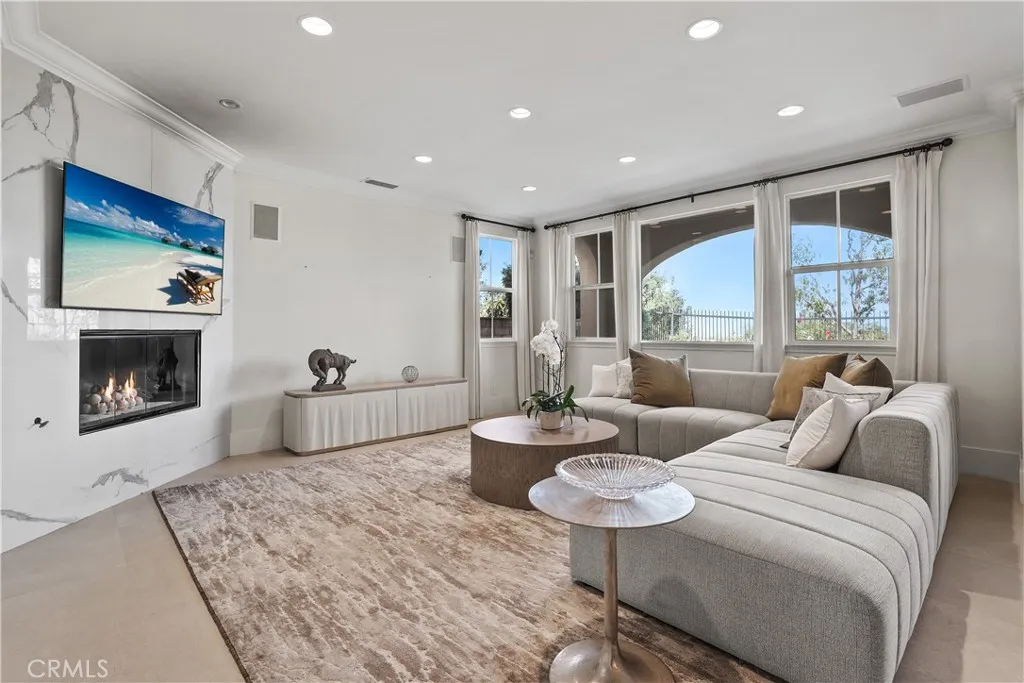 PRICED TO SELL! Completely reimagined in 2024 through an extensive top-to-bottom remodel, this five-bedroom, five-and-a-half-bath residence represents Quail Hill's most compelling offerings at an improved price. Modern sophistication meets timeless design across every square foot, with uncompromising attention to detail and finishes that set a new standard for the neighborhood. Set on one of Quail Hill's most sought-after streets, the home captures unobstructed panoramic city and mountain views from both levels sweeping, private vistas that transform dramatically from sunrise to sunset and make every evening feel like an event. A custom wood entry door and meticulously redesigned landscaping introduce the caliber of craftsmanship found throughout. Inside, imported tile flooring, House of Rohl fixtures, and crystal-clear glass shower enclosures speak to a commitment to quality that never cuts corners. The spa-inspired primary bath is the home's crown jewel anchored by an 84" Victoria + Albert soaking tub and surrounded by bespoke finishes that rival any five-star resort. The gourmet kitchen delivers on both form and function with custom cabinetry, a built-in stainless steel refrigerator, and expansive quartz slab countertops a space built for everything from weeknight dinners to large-scale entertaining. Open-concept living areas flow effortlessly through walls of glass to an entertainer's backyard complete with built-in BBQ, firepit, and multiple seating areas, all positioned to frame those extraordinary views. Thoughtfully designed for how families actually live, the ho