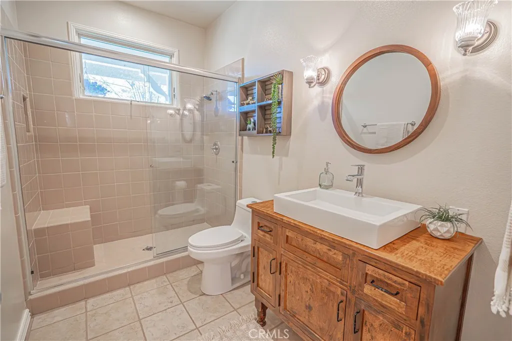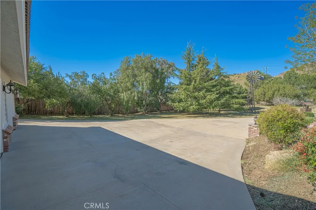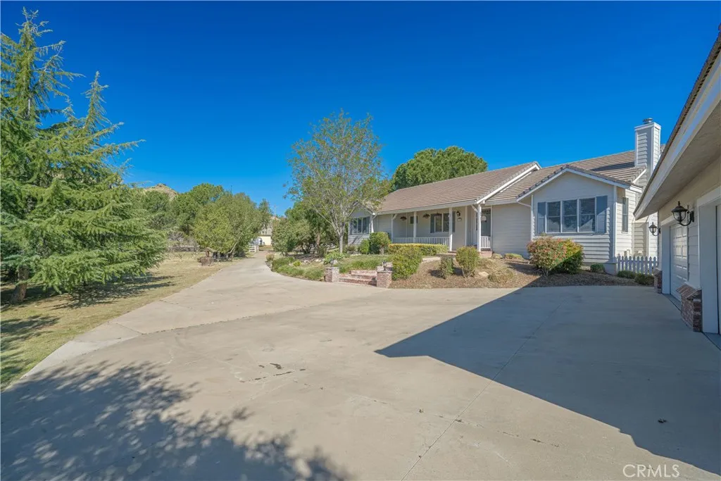 Ideally located in the heart of town in Agua Dulce, this custom-built single-story home set on 1.23 flat usable acres offers the perfect blend of small-town convenience, privacy, and relaxed country living. Built in 2002 and offering just under 2000 sq ft of warm, inviting living space with paved road access and natural gas service, this turnkey property provides just enough land to enjoy space and freedom without overwhelming maintenance. The light and bright interior is centered around a gourmet kitchen featuring granite countertops, stainless farmhouse sink, cabinet-faced built-in Sub-Zero refrigerator/freezer, butcher block island, walk-in pantry and abundant cabinetry. Just off the kitchen is a covered patio ideal for entertaining with a built-in BBQ and brick pizza oven. Vaulted ceilings enhance the kitchen, dining and living areas, complemented by beautiful hardwood flooring, wood-cased Anderson dual-pane windows and classic shutters on most windows. A cozy wood-burning fireplace anchors the main living space. The spacious primary suite offers crown molding, a large bathroom and two generous closets, while two additional bedrooms provide flexibility for guests, family or home office use. Outdoors, enjoy a charming front porch with Saddleback Mountain views, mature fruit trees, a productive garden with automatic sprinklers, RV parking space and an existing chicken coop structure. The front property area allows room for future barn, corrals or additional improvements. Water supply is supported by two wells plus a 4,000-gallon storage tank. A long paved driveway leads t