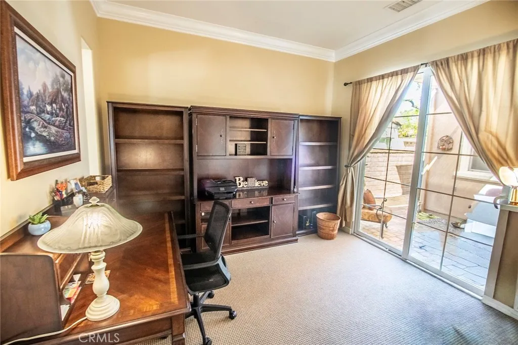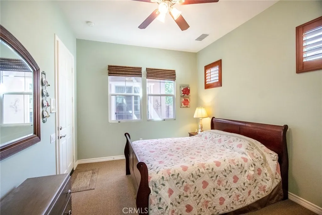 As you pass through the custom wrought iron entry, youre welcomed into a private covered atrium a true centerpiece of the home. With charming landscaping, a tranquil fountain, and shaded seating areas, this inviting space connects the main residence to a detached casita featuring its own bedroom and bathroom ideal for guests, a home office, or flexible living. As you enter the main home, a light-filled foyer opens to a thoughtful layout with a den overlooking the atrium and a convenient powder room for guests. The spacious living and dining areas flow seamlessly together, creating an ideal setting for both everyday living and entertaining. The large kitchen offers abundant cabinetry, beautiful countertops, updated appliances, a breakfast bar, and a sunny nook that opens to the backyard patio. The main-level primary suite features direct outdoor access and an ensuite with soaking tub, dual vanities, walk-in shower, and a generous walk-in closet. Upstairs, youll find an additional bedroom, bathroom, and a versatile loft space. Located in a vibrant 55+ community with a clubhouse, theater, pool, bocce ball, and more this home offers comfort, connection, and flexibility, with the rare addition of a private casita and inviting atrium.