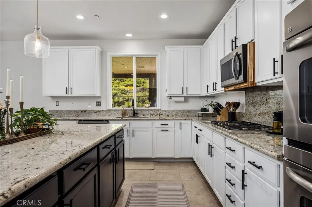 ***HIGHLY UPGRADED + PAID OFF SOLAR*** Nestled within the exclusive, gated enclave of Bridgegate in Canyon Hills, this impeccably upgraded residence at 35595 Desert Rose Way offers a rare blend of privacy, luxury, and modern efficiency. Boasting a premium location with no neighbors directly in front, the home provides a sense of openness and tranquility that is hard to find. The striking curb appeal is complemented by a spacious three-car garage and a meticulously maintained exterior that hints at the high-end finishes found within. Step inside to discover a thoughtfully designed floor plan featuring four spacious bedrooms and three full bathrooms, plus a versatile upstairs loft perfect for a home theater, gym, or playroom. The heart of the home is the chefs dream kitchen, which has been completely reimagined with high-end appliances, custom cabinetry, and premium countertops. Whether you are hosting an intimate dinner or a large gathering, this culinary space flows seamlessly into the living areas, anchored by elegant flooring and designer touches throughout. Sustainability meets savings with a fully paid-off solar system, ensuring energy efficiency and significantly reduced utility costs for years to come. The primary suite serves as a true sanctuary, while the additional bedrooms offer ample space for family or guests. Outside, the backyard provides a private retreat to enjoy the beautiful Lake Elsinore climate. Residents of Bridge Gate also enjoy the peace of mind of a gated community along with access to the extensive parks, pools, and hiking trails that make Canyon Hi