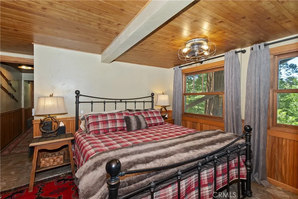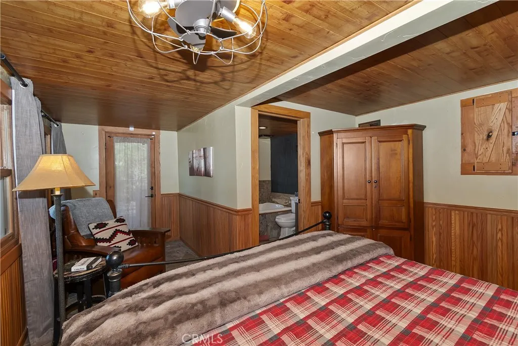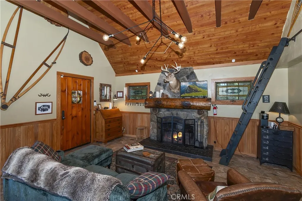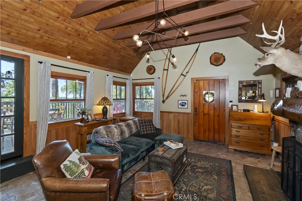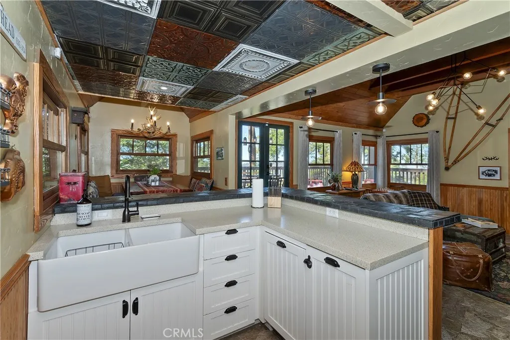 Step into a piece of Lake Arrowhead history with this charming and storied 1924 cabin, rumored to have once served as the hideout of a local bootlegger during the days of Prohibition ~ Today, this one-of-a-kind retreat has been thoughtfully refurbished in 2021, blending historic charm with stylish modern updates. Tucked away on the remote and exclusive southeast side of Lake Arrowhead, this cozy cabin offers a rare sense of seclusion while still being within reach of everything the mountain has to offer ~ Youll find approximately 1,000 square feet of gated deck space designed for outdoor living and entertaining ~ Enjoy the year-round hot tub spa, BBQ area, and fire pit while taking in breathtaking lake views and unforgettable sunset skies ~ The upper deck offers one of the most captivating vantage points of the lake, while fall brings a spectacular display as nearby maple trees turn vibrant shades of gold and crimson ~ On the 4th of July the night sky will come alive ~ Inside, the architect-owner infused the cabin with thoughtful design elements that complement its historic roots with a rustic tin ceiling in the kitchen, a farmhouse sink, and modern industrial lighting create a warm yet refined mountain aesthetic ~ The home is adorned with local mountain artwork, vintage photographs, and curated antiques that add character throughout ~ Relax and unwind in the copper clawfoot tub beneath a large skylight, where you can soak while gazing up at the treetops and star lit skies ~ In warmer months, enjoy the private outdoor cedar shower surrounded by pines for a true mountain ret