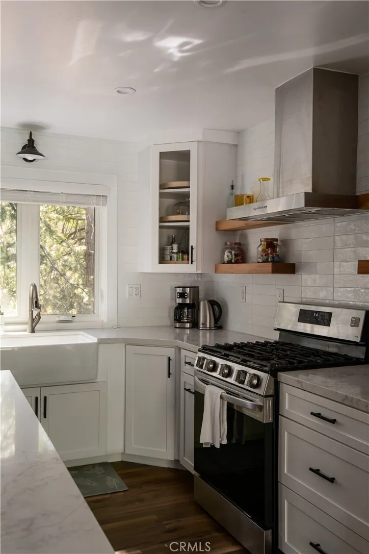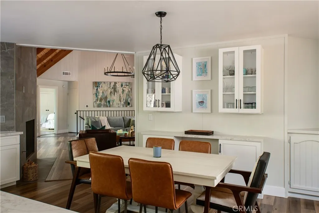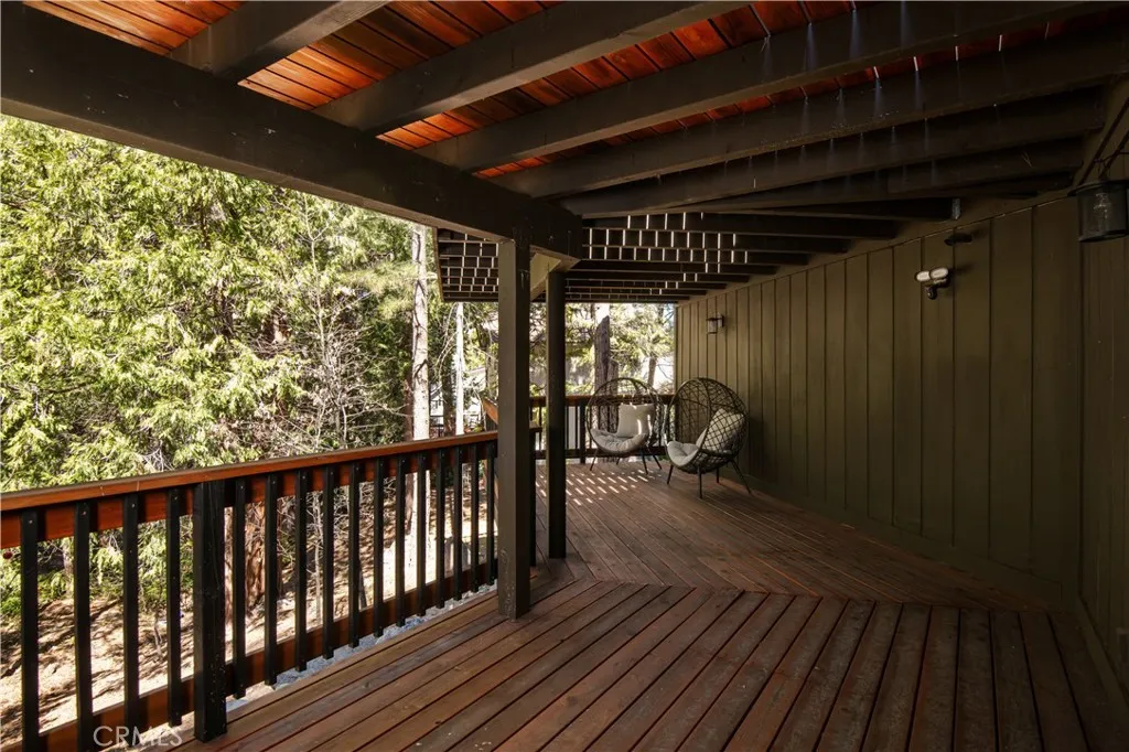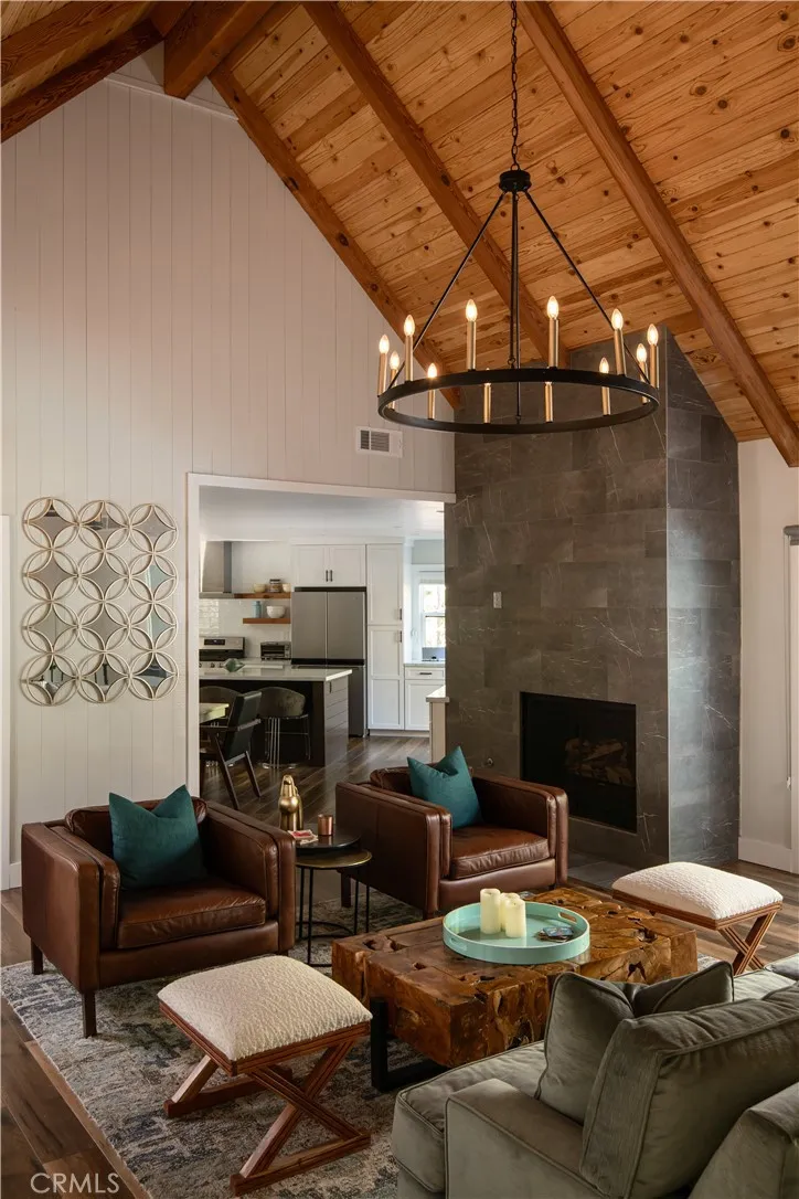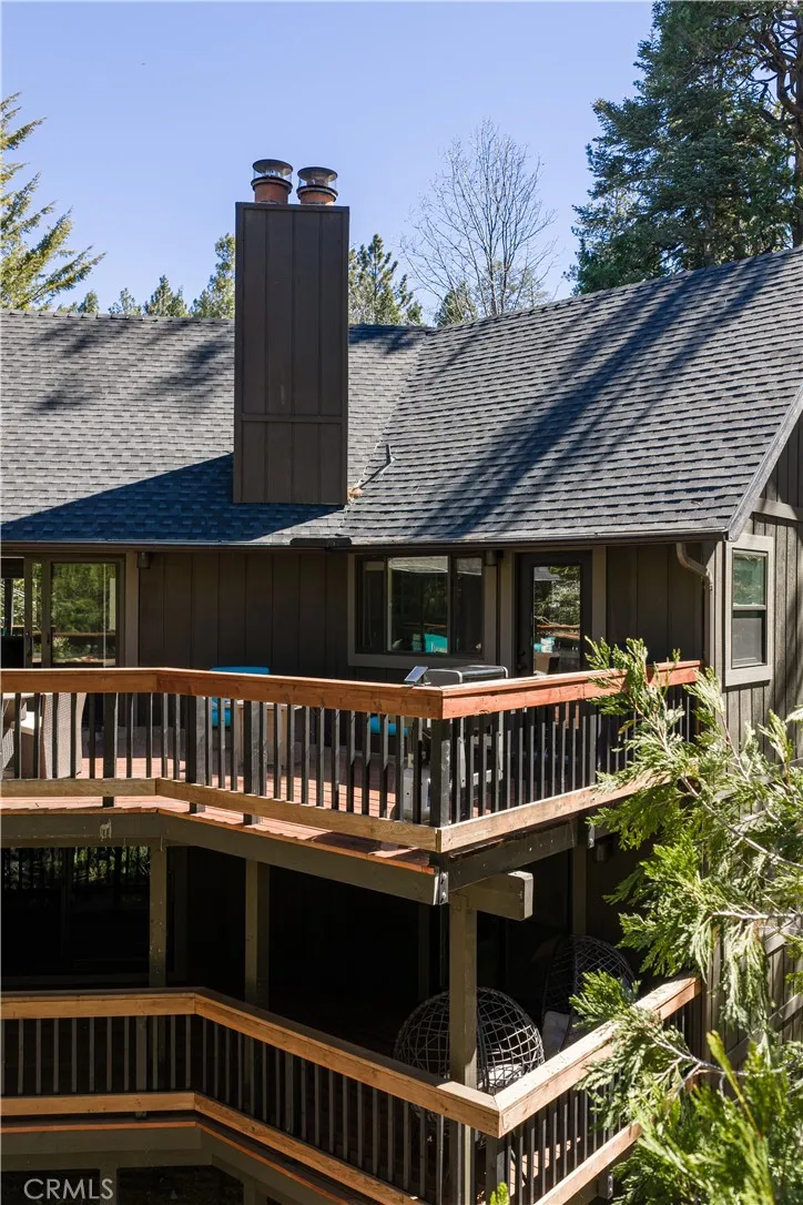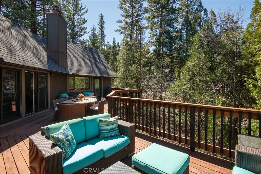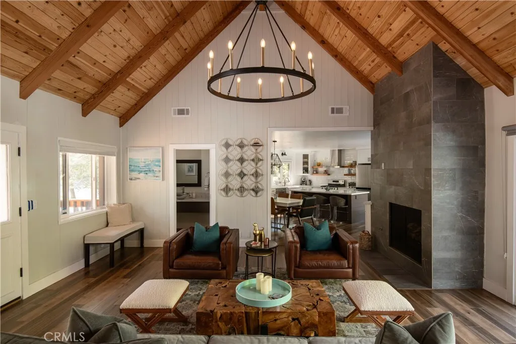 Introducing The Pinecrest Retreata refined modern mountain residence set on a coveted corner lot, where thoughtful design meets effortless living beneath a canopy of towering pines. This home does come with lake rights to Lake Arrowhead & has newly installed AC in 2022. Beautifully reimagined with a focus on both style and functionality, this home offers an ideal floor plan with the primary suite located on the main level alongside the kitchen and main living spaces, creating true single-level living rarely found in mountain homes. Downstairs, a spacious secondary family room and two well-appointed guest bedrooms provide the perfect layout for hosting while maintaining privacy and comfort for both owners and guests. Ideally positioned, the home includes highly sought-after lake rights to Lake Arrowhead and is just a golf cart ride away from the Lake Arrowhead Country Club, offering convenient access to golf, dining, and one of the areas most desirable lifestyle amenities. Inside, rich wide-plank wood flooring, vaulted wood-beamed ceilings, and curated finishes create a warm yet elevated atmosphere that feels both inviting and sophisticated. The main living room is anchored by a striking stone fireplace and framed by expansive sliding glass doors that flood the space with natural light and seamlessly connect indoor and outdoor living. The kitchen flows effortlessly into the dining and living areas, making it ideal for everyday living, entertaining, and gathering with family and friends. The primary suite is a true retreat, offering peaceful forest views, direct access to the