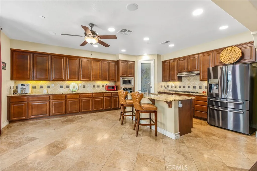 Former model home in the sought-after gated community of Shady Grove, set on a rare .58-acre cul-de-sac lot with no front and rear neighbors thanks to a protected nature preserve, offering exceptional privacy. Meticulously maintained with no expense spared, this home shows exceptional pride of ownership. Just off the entry, a dedicated office with stunning custom built-ins creates an immediate and impressive work-from-home space. This 3-bedroom plus office home features a thoughtfully designed layout with beautiful tile flooring and elegant arched hallways, a wine cellar, and a spacious kitchen with upgraded appliances that flows seamlessly into the family room with a cozy fireplace. The primary suite serves as a true escape, offering direct backyard access, a spa-inspired bath, and a showstopping walk-in closet. Plush, high-end carpeting in the office, bedrooms, and primary closet adds warmth and a refined sense of luxury throughout. Step outside to a beautifully landscaped backyard crafted as a private retreat, featuring a saltwater pool with cascading waterfalls, a gas fire pit, expansive covered patio, and lush landscaping with vibrant citrus trees. Additional highlights include a FULLY PAID SOLAR SYSTEM, a 3-car garage with EV charging, and a built-in speaker system for music and entertainment throughout the home. The HOA offers top-tier amenities including tennis, pickleball, basketball courts, 3 parks, a playground, and RV storage. All just minutes from downtown Fallbrook and local wineries. This is a rare opportunity to own a truly special home in one of Fallbrooks